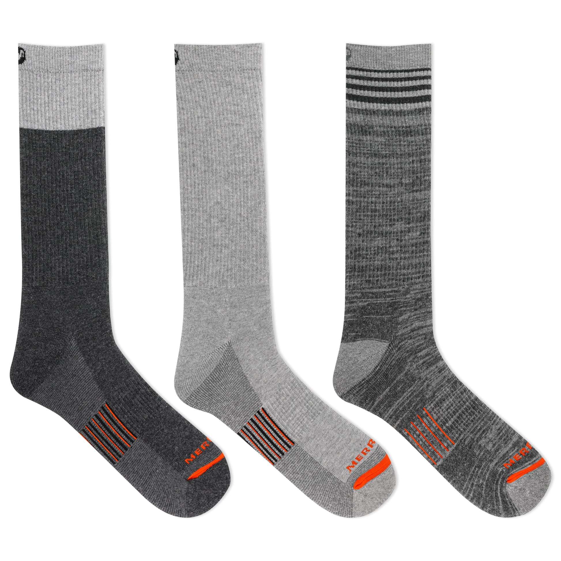 Merrell Unisex-Adult's Men's and Women's Merino Wool Work Socks-3 Pair Pack-Arch Support, Crew-Light Gray, Medium-Large