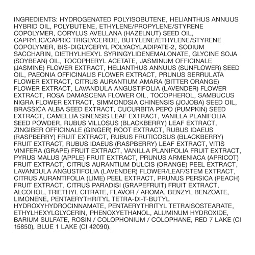 - BENEFITS: Infused with fruit extracts and vitamin E to lock in moisture while softening and nourishing lips. The non-sticky formula makes it ultra comfortable to wear all-day