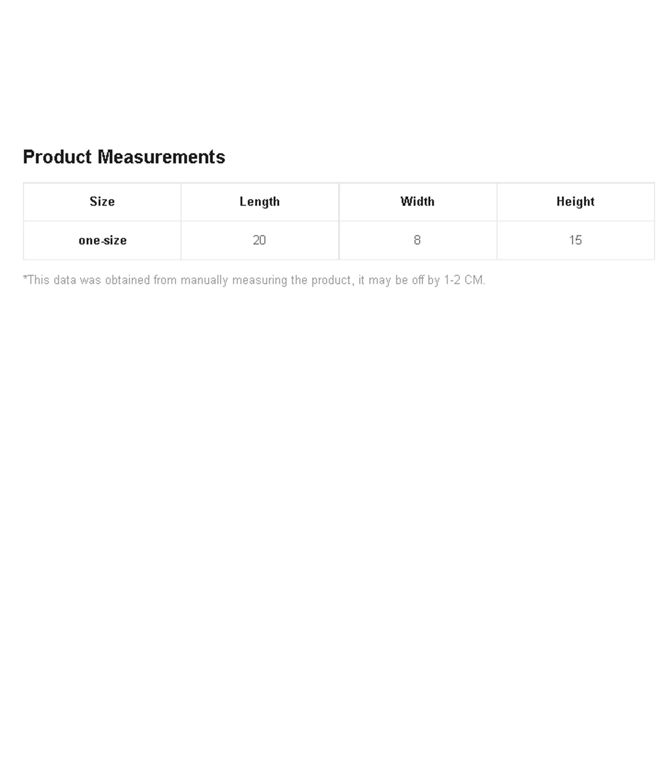 One Size: Length: 20.0', Width: 8.0', Height: 15.0'