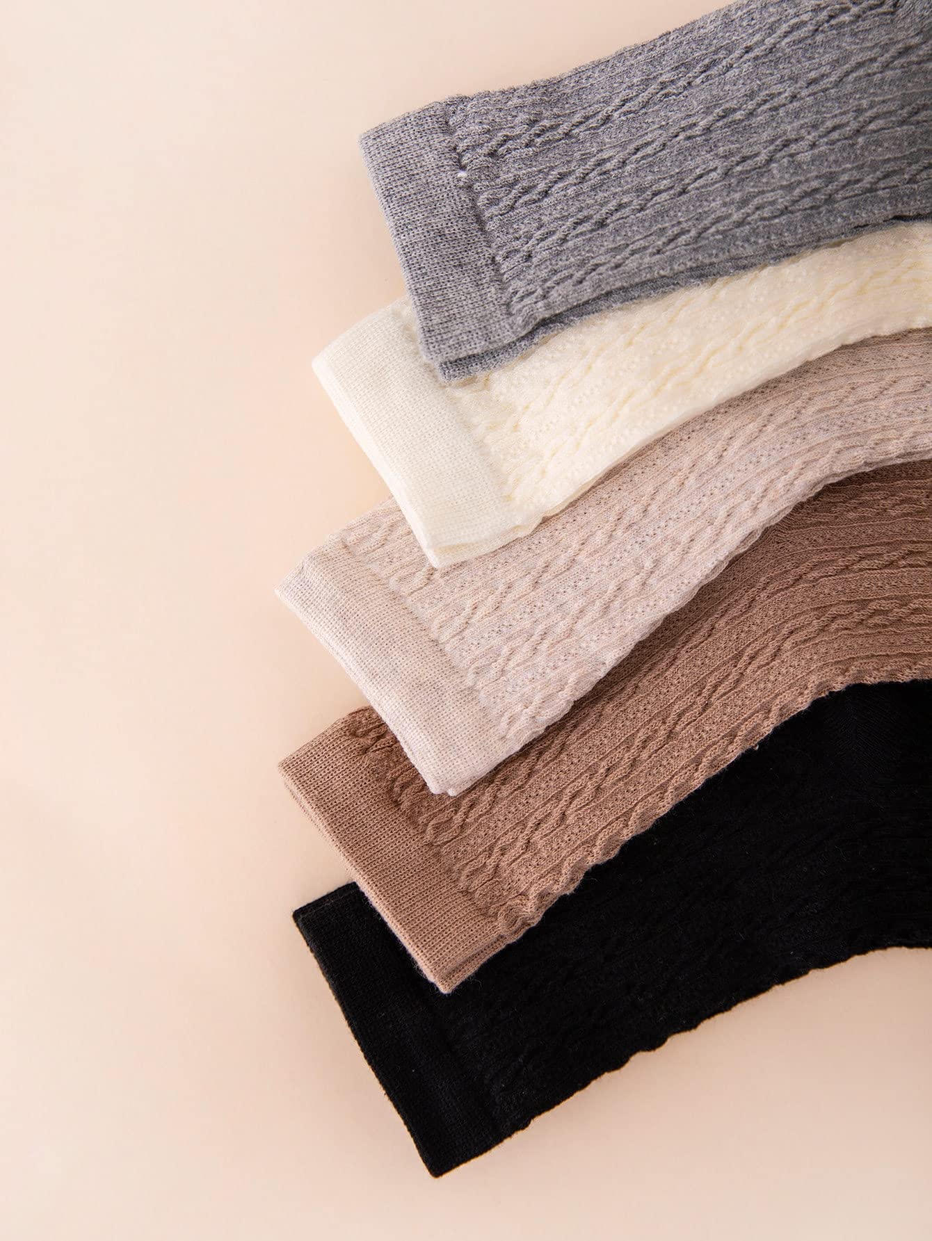 - Feature: 5 Pairs, Cable Knit, Crew Socks, Plain