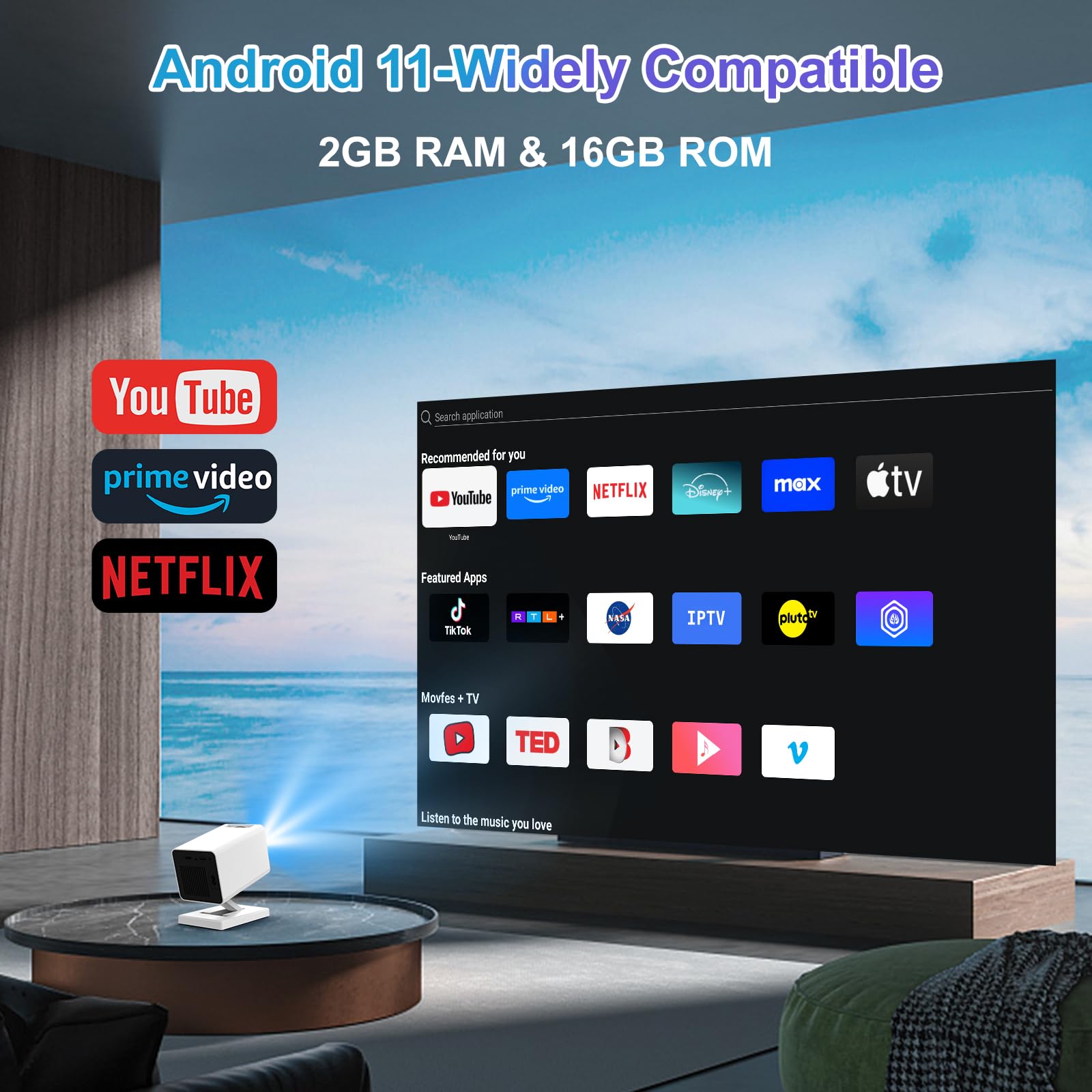 - ✅【Enjoy Smooth Media and Entertainment】Maypug mini projector equipped with 2GB RAM and 16GB ROM memory, it can play movies, shows, live sports and music from YouTube, Prime Video, Netflix and other apps. Just download them online with ease, ensuring convenience without the need for external devices. With just one projector, you can turn your home into a fully functional entertainment center.