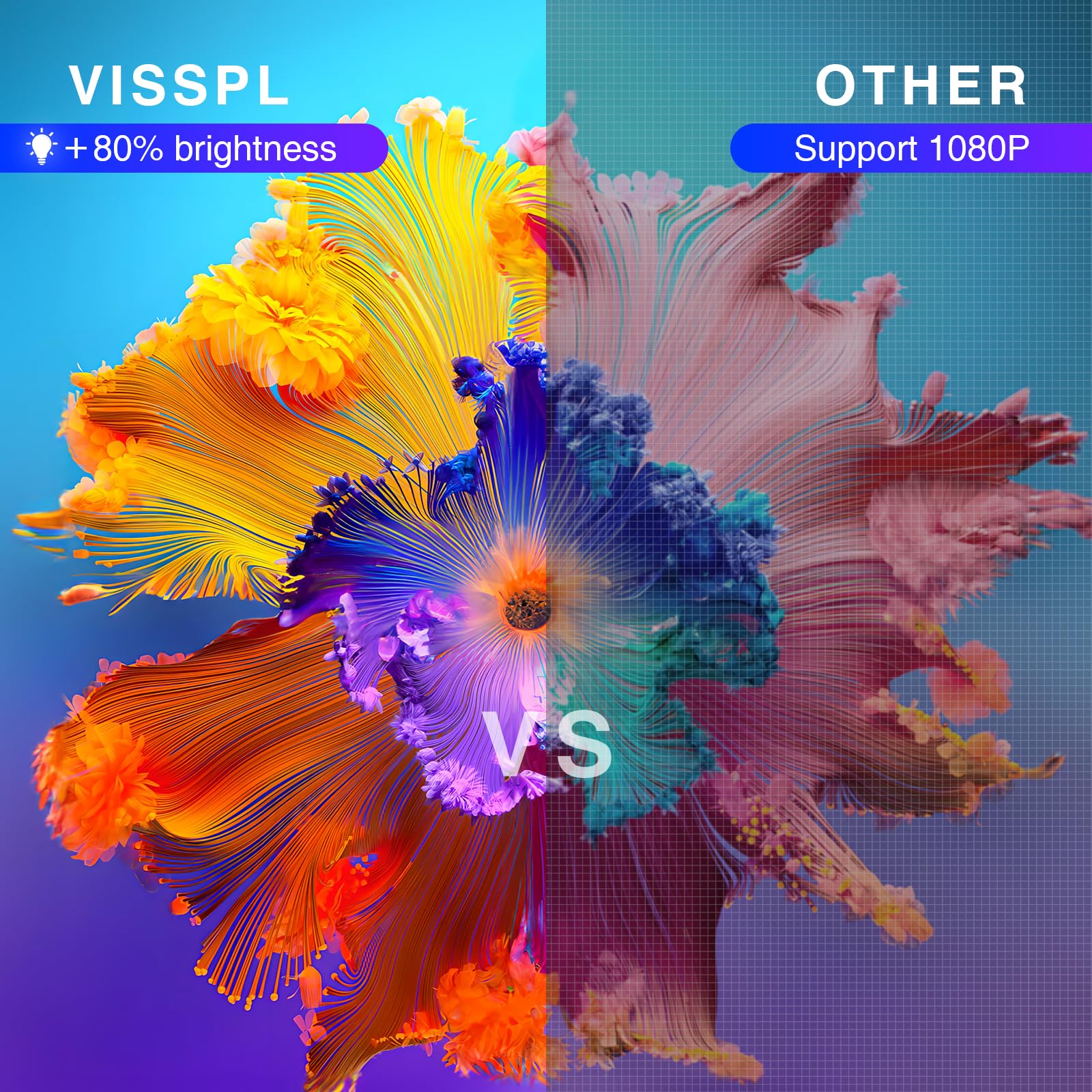 - 【Full HD 1080P & Eye Protection】The VISSPL 2025 projector supports 1080P resolution for stunning visuals. Powered by advanced LED technology and a uniform illumination method, our projector guarantees exceptional image quality, delivering a dynamic and color-vibrant effect, minimizing the impact of blue and direct light. Perfect for safeguarding children's eye health! For optimal performance, we recommend using video projector in a dark environment to fully enjoy its capabilities.