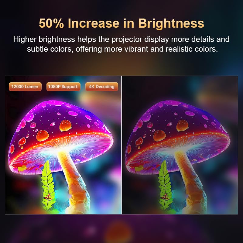 - 𝗦𝘂𝗽𝗽𝗼𝗿𝘁 𝟰𝗞/𝟭𝟬𝟴𝟬𝗣: This projector features a native 720P resolution, supports 1080P and 4K decoding, delivering clearer and more detailed image quality to meet high visual demands. With Bluetooth 5.2, it easily connects to wireless speakers and headphones. Enjoy the ultimate visual and audio experience at home with this bedroom projector.