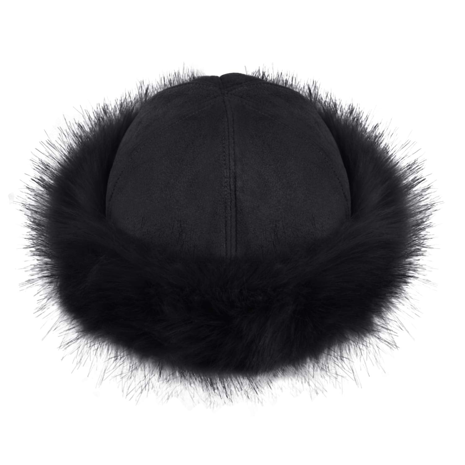 MioCloth Faux Fur Trimmed Beanie Hat Winter Warm Soft Classy Russian Hat for Women Girl Black