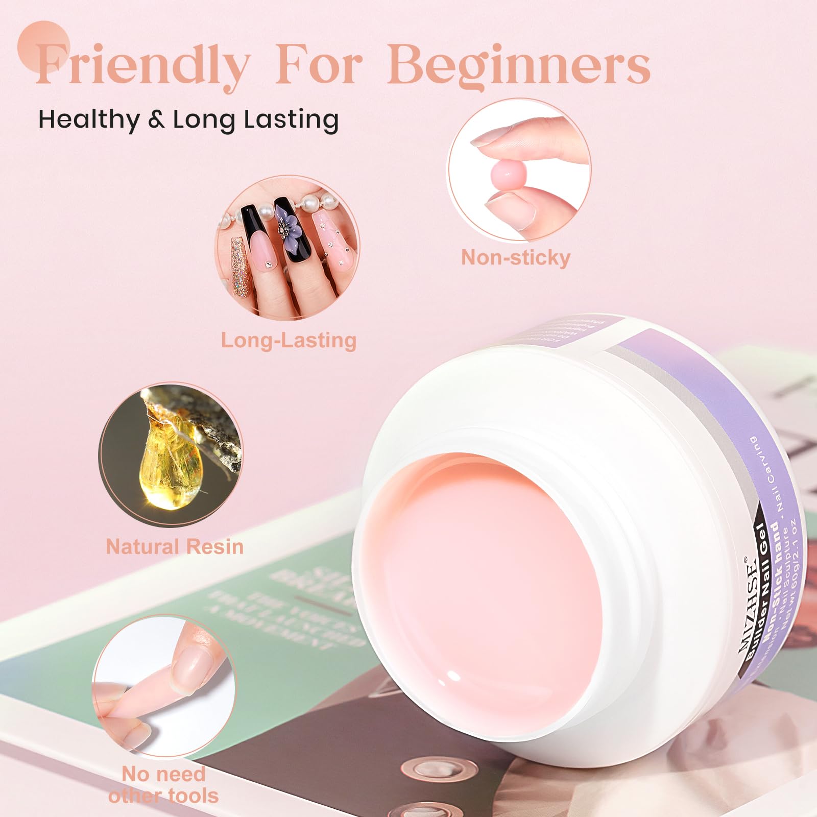 MIZHSE Solid Nail Builder Gel, 2.1 oz 60g Nude Builder Gel for Nails Non-Sticky Solid Builder Gel for Nail Extensions Hard Gel with 24pcs Nail Forms and Silicone Pen Nail Art Manicure Set