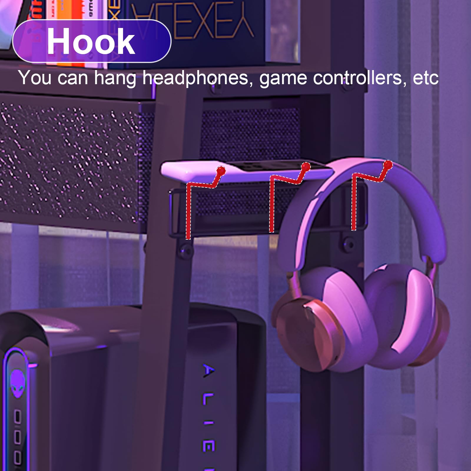 - ☑️【Side Hook--Hanging Headphones】 The hook of television stands can install on the left or right side,which can hang headphones,game controllers,etc..