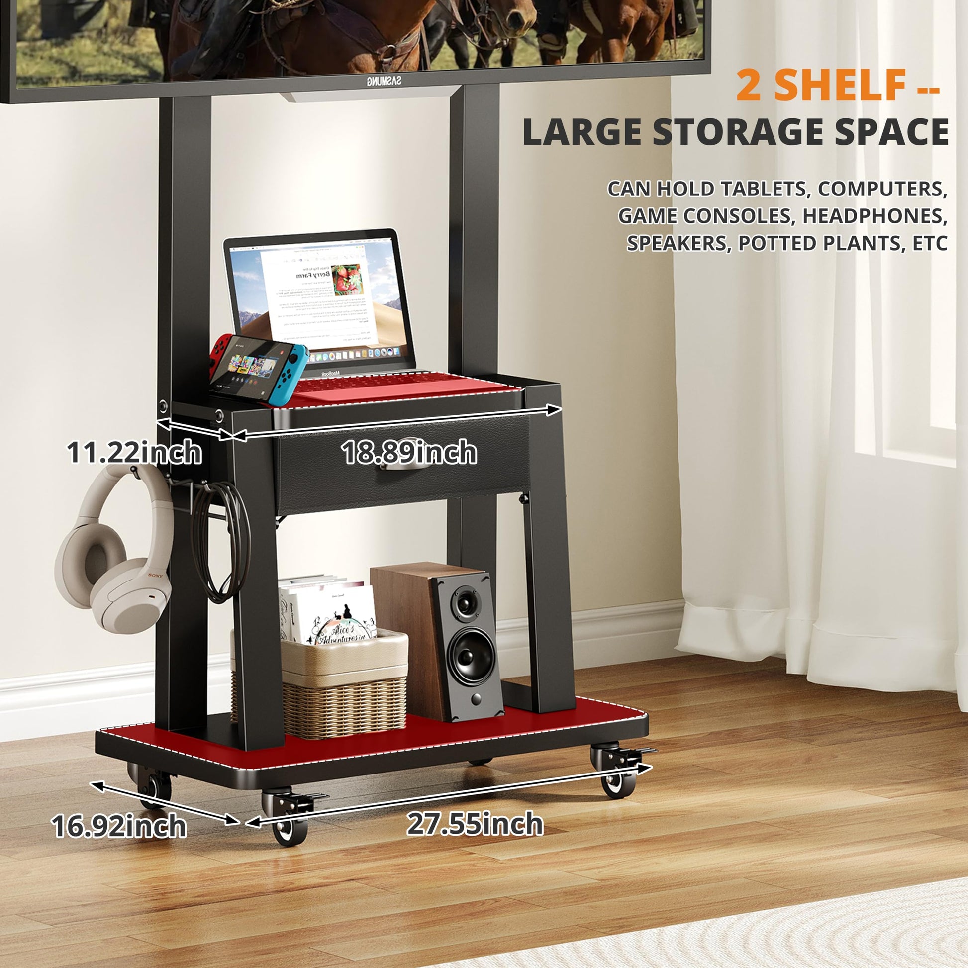 - ☑️【Load Bearing 120lbs】 The overall weight of portable tv stand is 34.17lbs,with stronger materials and better quality,capable of bearing up to 120 pounds.