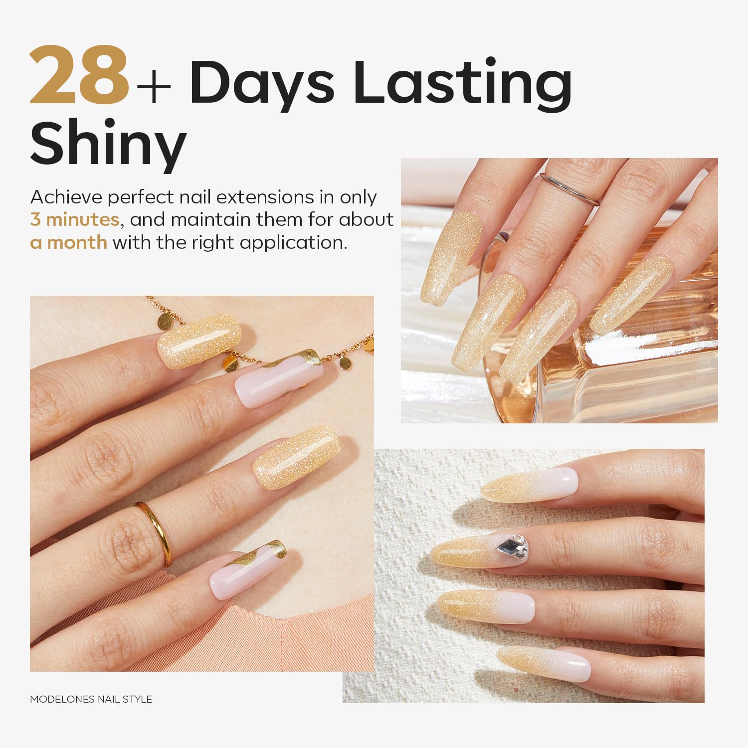 modelones Poly Nail Gel Kit, Hema-Free 60ML Sparkling Gold Gel Nail Enhancement Thickening Diamond Glossy Builder Overlays Home DIY Salon Use