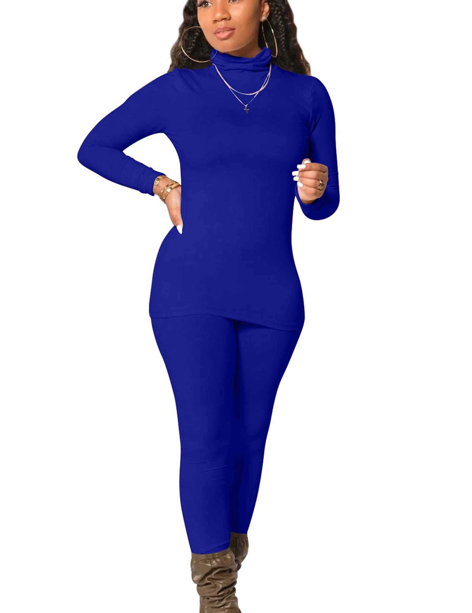 Mokoru Women's Tracksuit 2 Piece Outfits Turtleneck Long Sleeve Shirt Workout Jogger Legging Pants Set, Small, Royal Blue