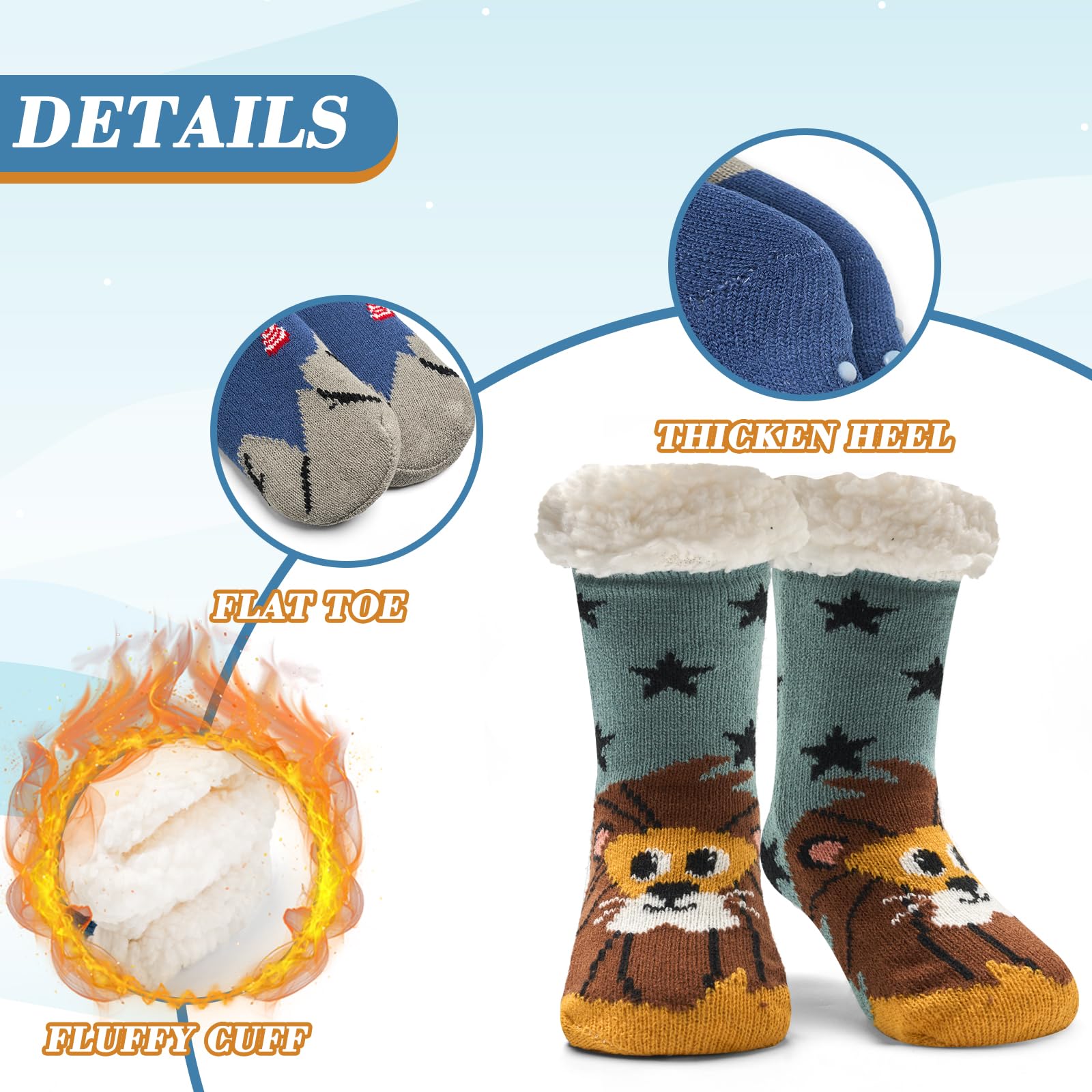 Moon Tree Toddler Boys Fuzzy Socks Winter Warm Socks for Kids Boys Thick Thermal Fleece Lined Fluffy Socks for Home 3 Pack Animals Beast 2-3T