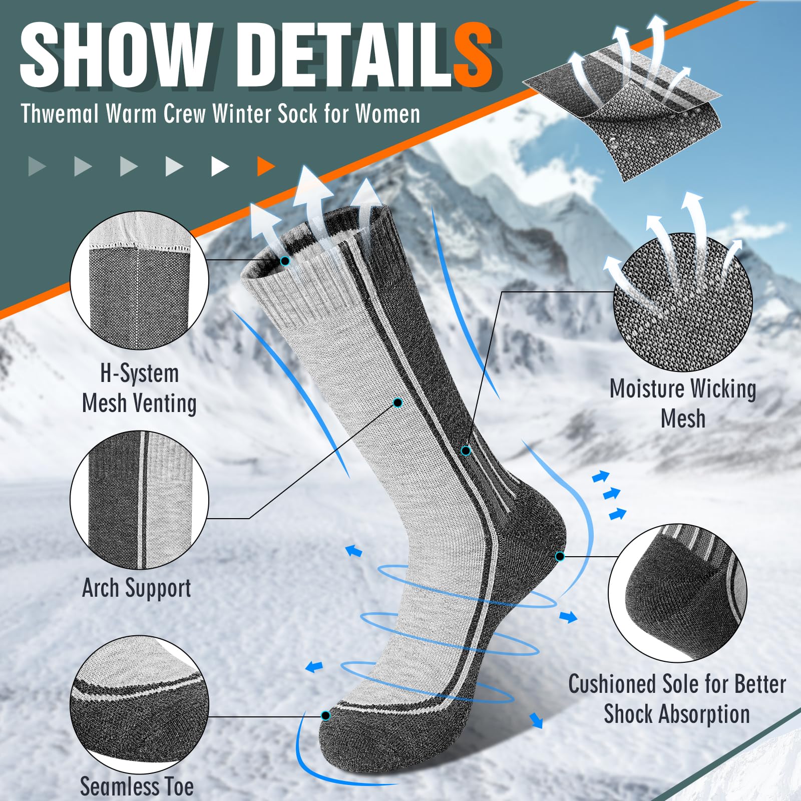 - 【Unique Sole】 Mid weight, Moisture wicking material,durable, breathable, dry and comfortable,warm and breathablelt, is recommended to use it in an environ