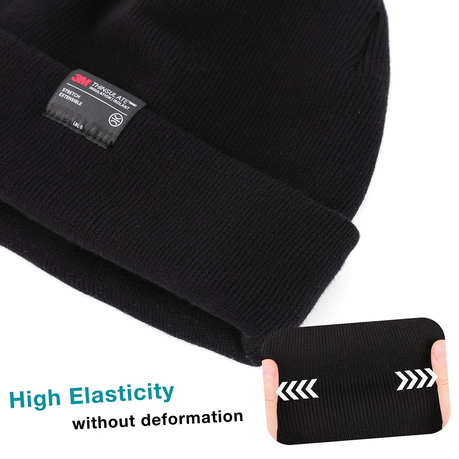 - 【40G 3M Thinsulate Warm Beanie】Made of 40G 3M Thinsulate cotton, stretchy polyester fabric and soft-spun knitted. No shedding extremely comfortable soft and lightweight, holds shape and color after washing, keep hands warm in cold chilly weather even if temperatures drop to 5°F. Fleece lined skull cap protects you from strong winds and itching.