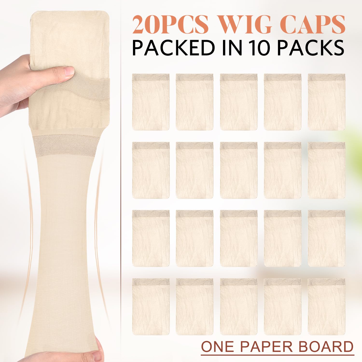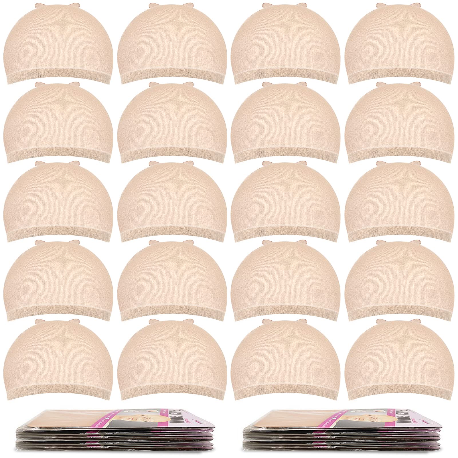 MORGLES 20 Pcs Wig Cap Beige, Stretchy Nylon Wig Caps for Women