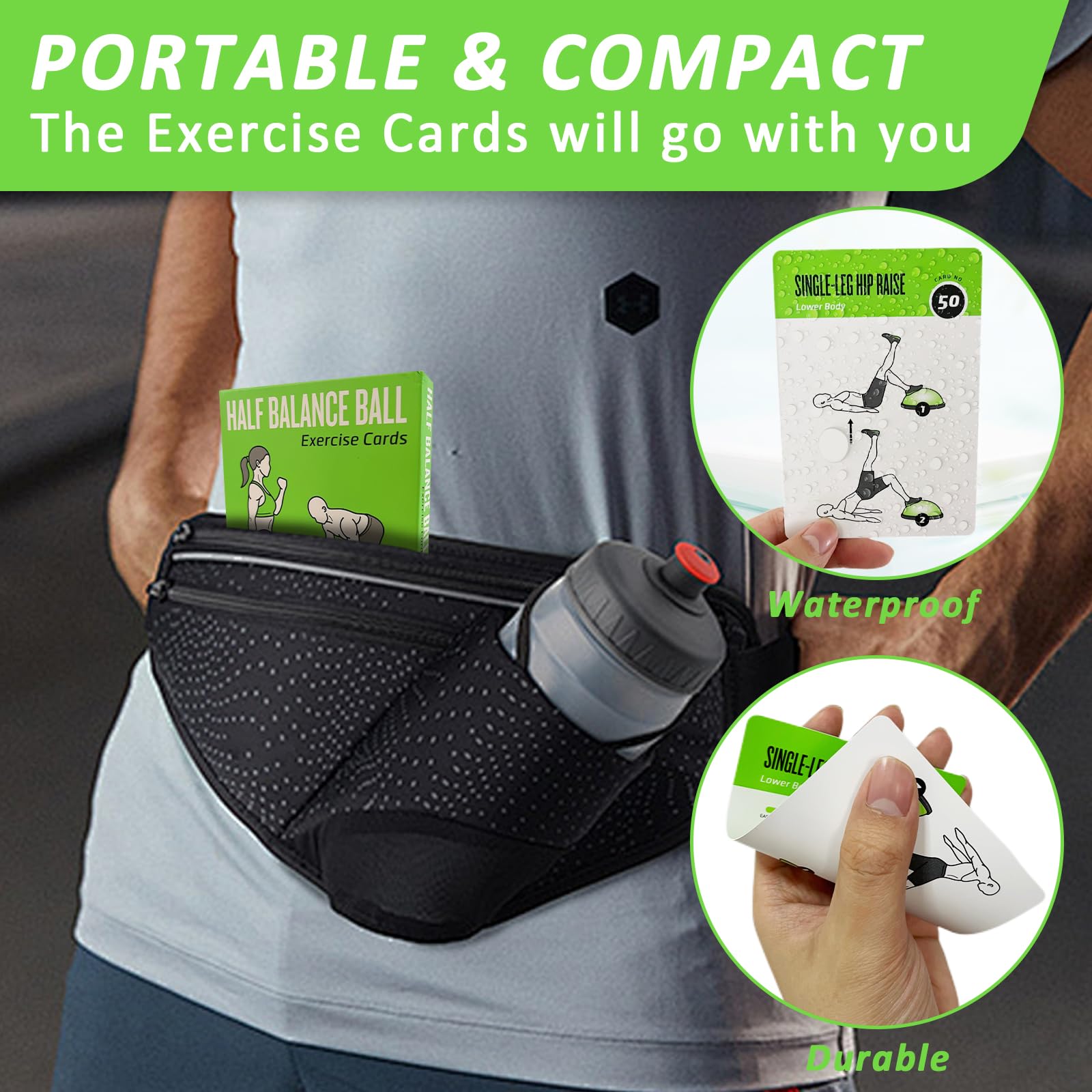 MOVASEE Half Balance Ball Workout Cards, 62 Exercises Cards Deck Large Size 5" x 3.5" Fitness Cards for Women & Men, Beginner Fitness Guide to Training Exercises at Home or Gym