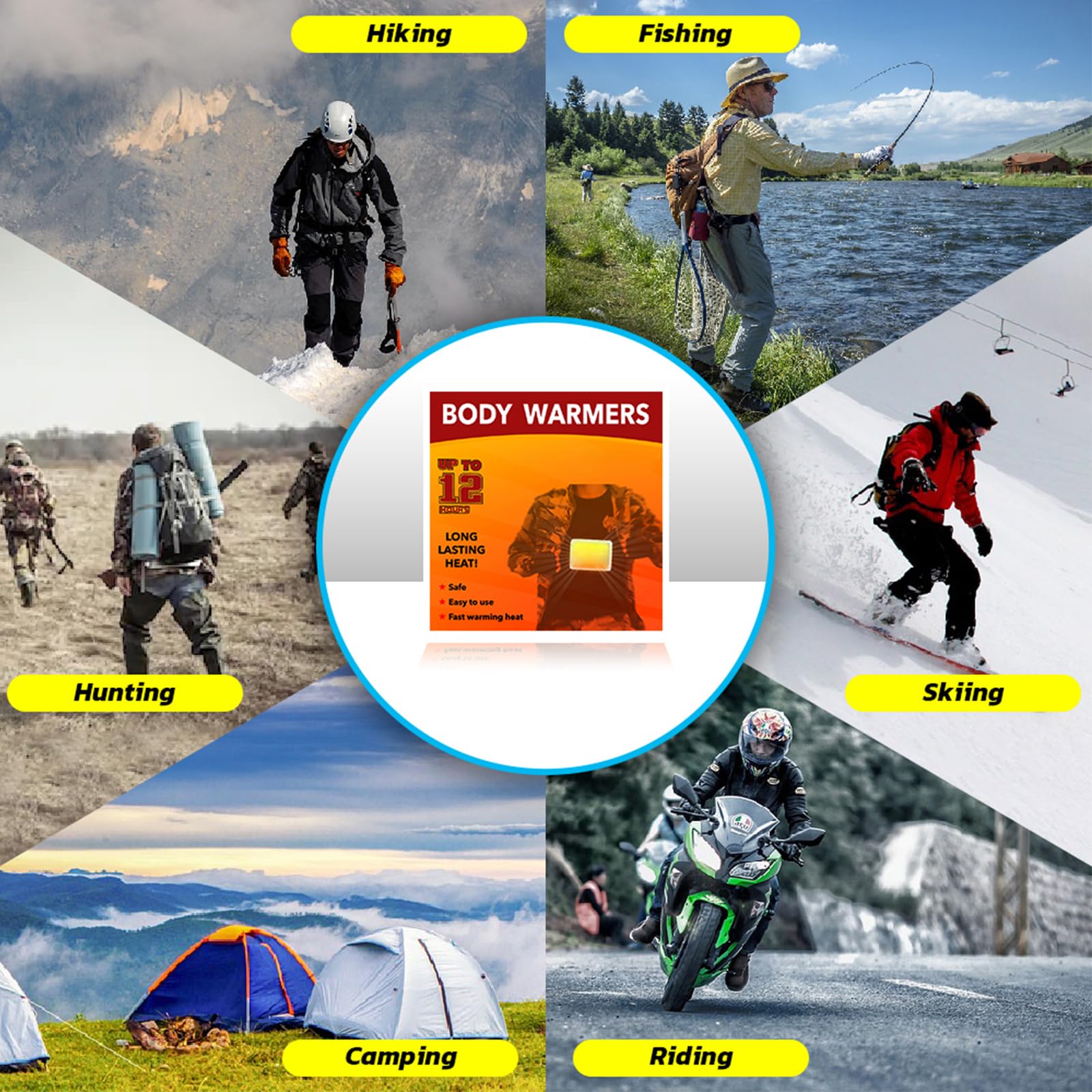 - AIR ACTIVATED - Natural long-lasting heat, reactions with air to heat in few minutes. Adhesive into any coats, gloves, hats, pants to get warm. Body warmers for cold weather, keeping your hands body warmth when it’s cold outside with up to 12 hours of heat.