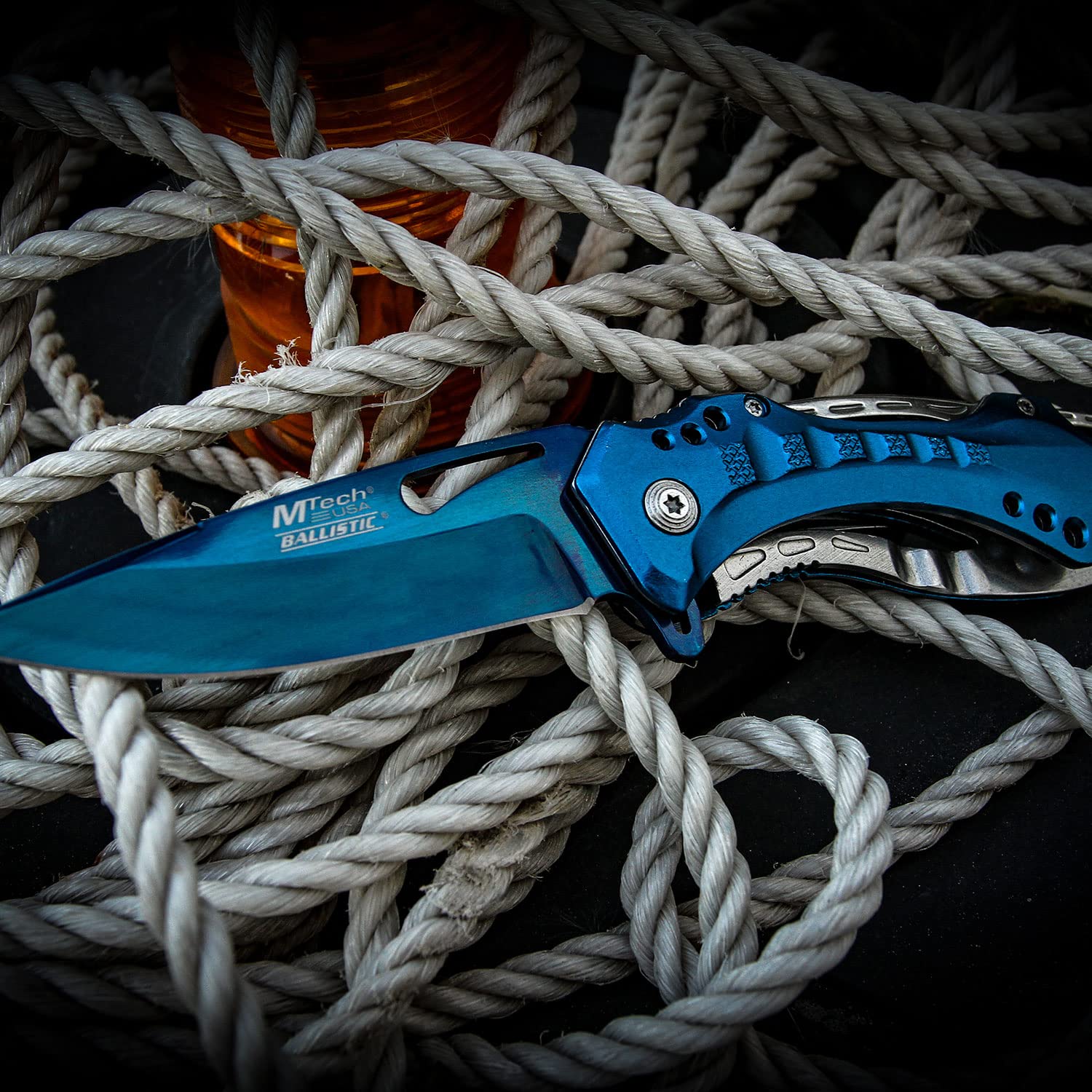 Details: This spring assisted open folding knife from Mtech USA ballistic offers easy one handed deployment. Once open, the blade locks securely into place with the use of its liner lock. This knife features a 3.75-Inch, 3mm thick stainless steel blade. The aluminum handle has a bottle opener. This knife comes complete with a silver stainless steel pocket clip for easy and safe carry. Measures 4.5 inches closed. MTech USA offers a diversified lineup of Tactical folding knives, fixed blade knives, archery products, and security items -- all at competitive prices. The Mtech USA ballistic line consists of all spring assisted opening folding knives.
