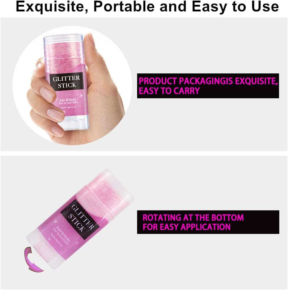 - 【Adhesive & Easy to Apply】Our cosmetic glitter stick is with good adhesion, no glitter glue required. Just glide it on, easy and quick, easy to control the amount applied. Sparingly apply for a subtle look or layer more for an intense dramatic effect. Ideal hair glitter for kids. The glitter flake face gems stick on well and stay all day and night.