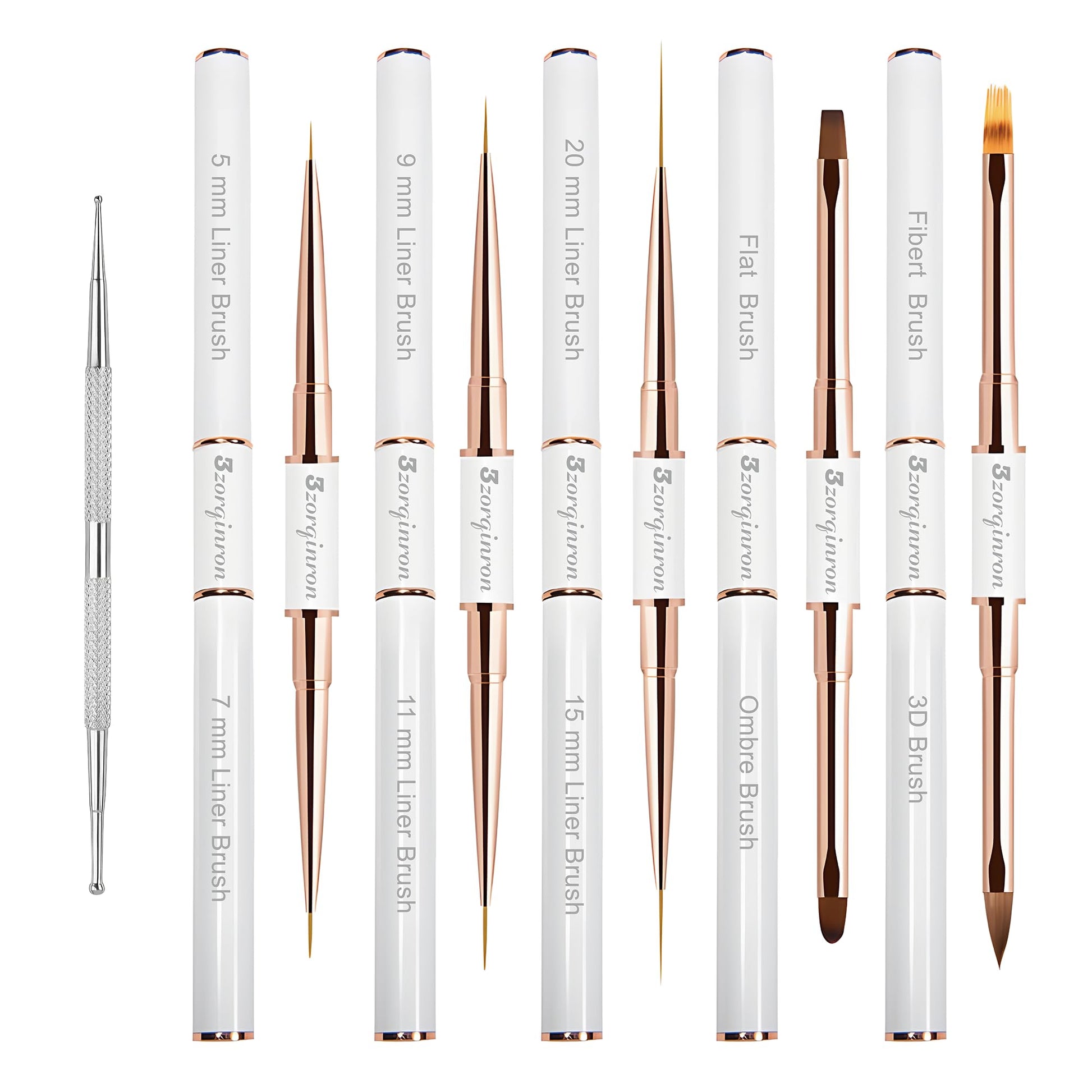 - Versatile Design – Our brushes feature double-heads with 10 different brush heads to choose from, including liner and detail brushes, flat and ombre brushes, a Filbert brush, and a 3D brush, giving you the freedom to create any design you like. Whether you're creating delicate floral patterns or bold abstract designs, these brushes will deliver outstanding results.