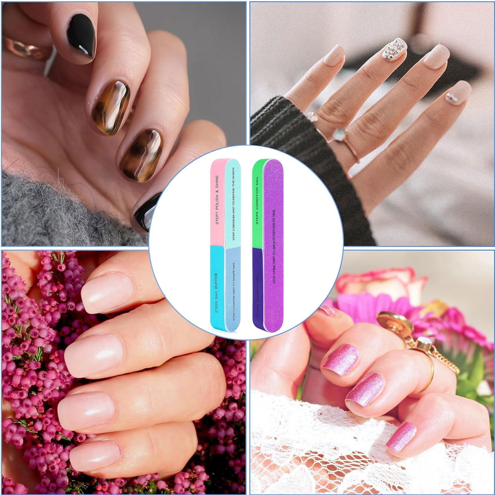 - All-in-One Nail Shine Buffer with 7 Different Grits:Versatile nail buffer incorporates 7 different grits to cater to all your nail care needs. Step 1 & 2 utilize coarse and medium grits to shape nail, Step 3 smooth the edges, Step 4 conditions the nail, Step 5 smooth surface, Step 6 buffs the nail, and Step 7 delivers a polished and shining finish. Achieve salon-quality results with ease, whether you have natural or artificial nails, and customize the process based on your specific needs