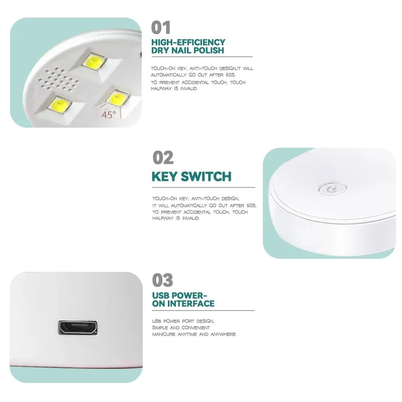 NAILPOP Small UV Nail Lamp delivers professional-grade curing in a compact design. This portable UV lamp efficiently hardens gel polish with precision timing and even light distribution. Its space-saving footprint makes it ideal for home use or travel while maintaining salon-quality performance. Compatible with most gel formulations for flawless, long-lasting manicures.