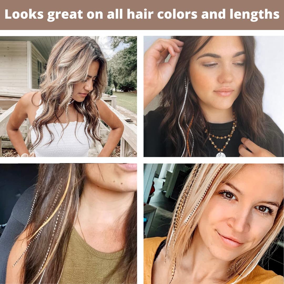- Natural Color Hair Feathers: These 9”-12” long, 100% real rooster feather extensions feature stunning natural hues. Easily removable and reusable, they let you refresh your look effortlessly as your hair grows. Add a touch of unique flair to your hairstyle today!