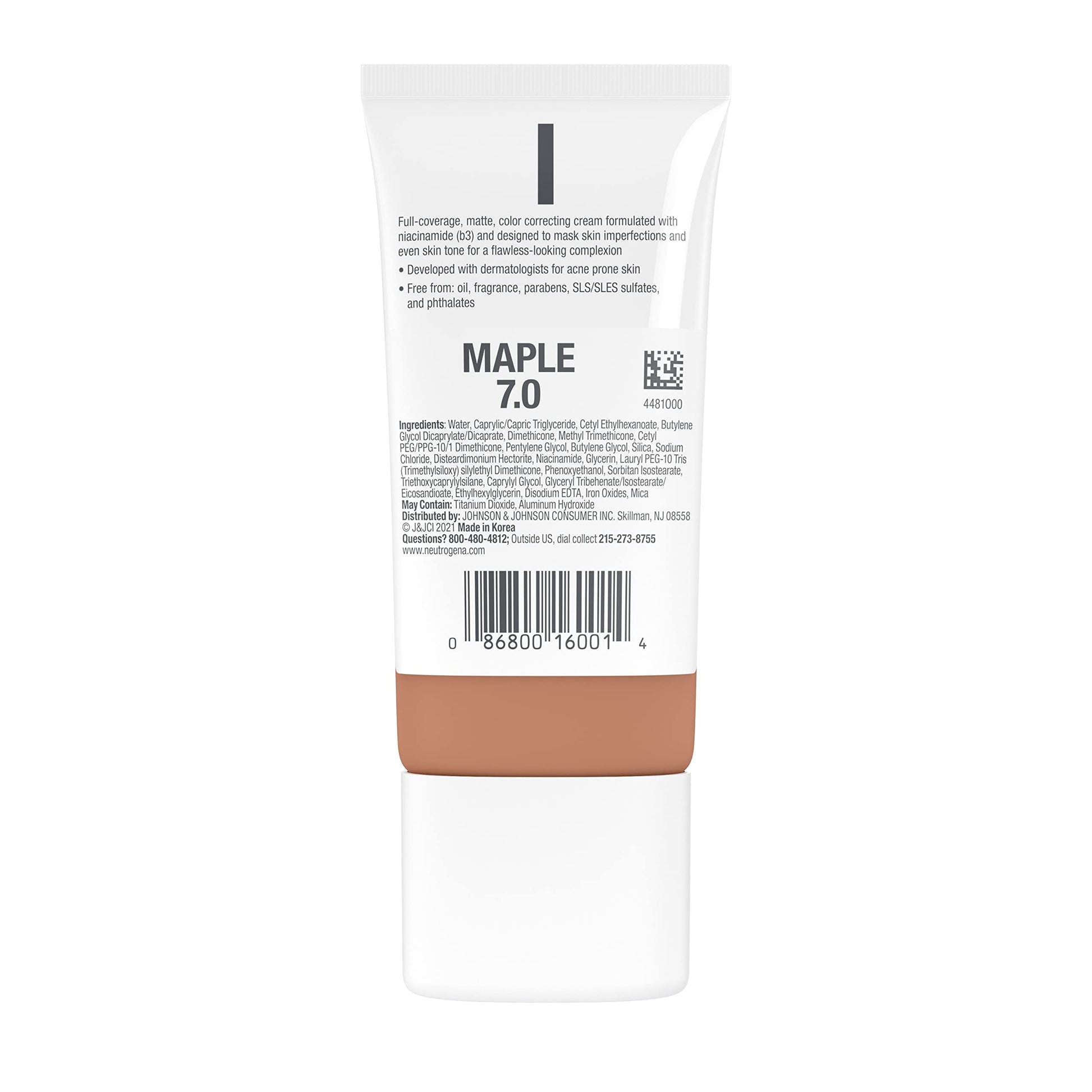 - 1-ounce tube of Neutrogena Clear Coverage Flawless Matte CC Cream in Maple 7.0 tone for full-coverage and a flawless-looking complexion