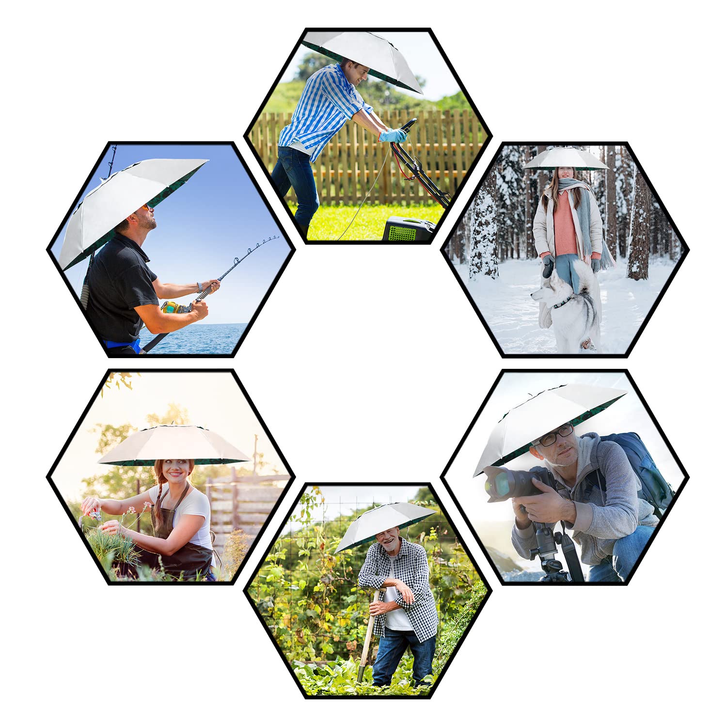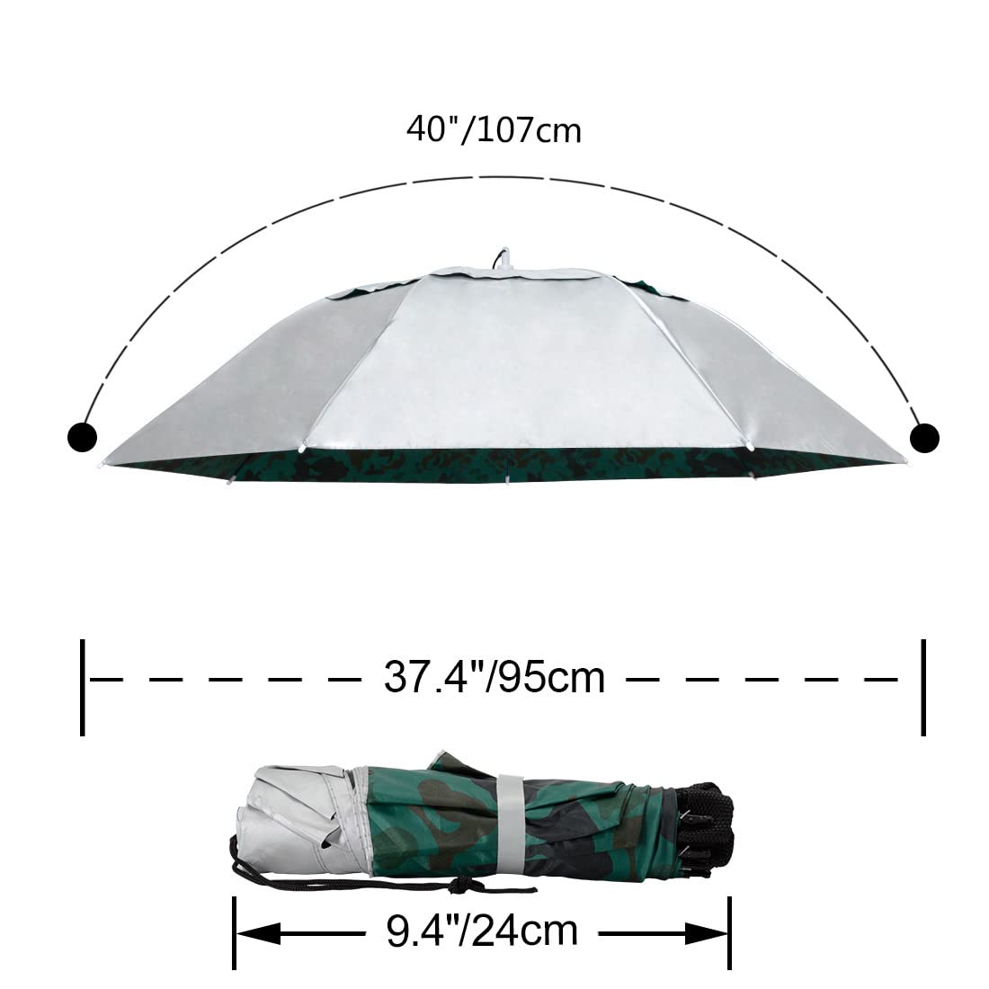 NEW-Vi Fishing Umbrella Hat Folding Adjustable Sun Rain Cap, 37.4”Oversize Hands Free Umbrellas, 7-Ribs Anti-UV Waterproof Headwear for Fishing Gardening Golf Sunshade Outdoor