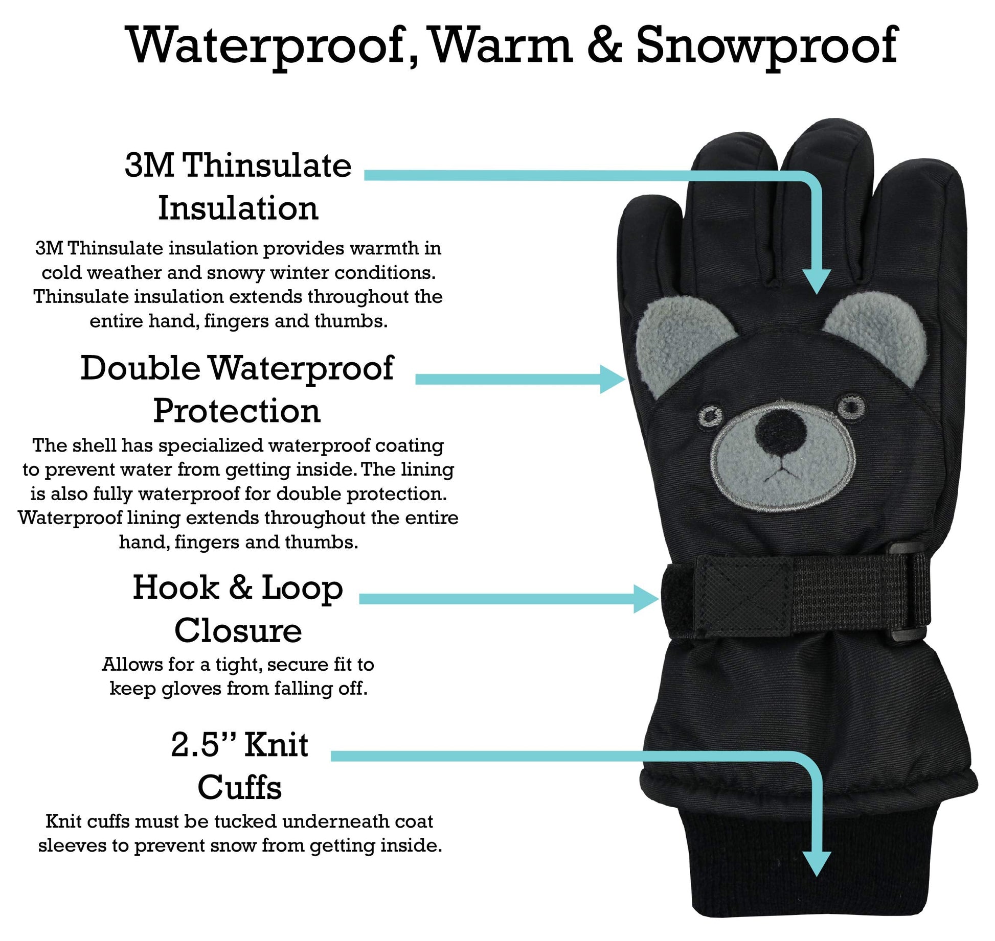 N'Ice Caps Kids Waterproof Snow Gloves Cute Animals Winter Warm Thinsulate (Puppy Black, 5-6 Years)