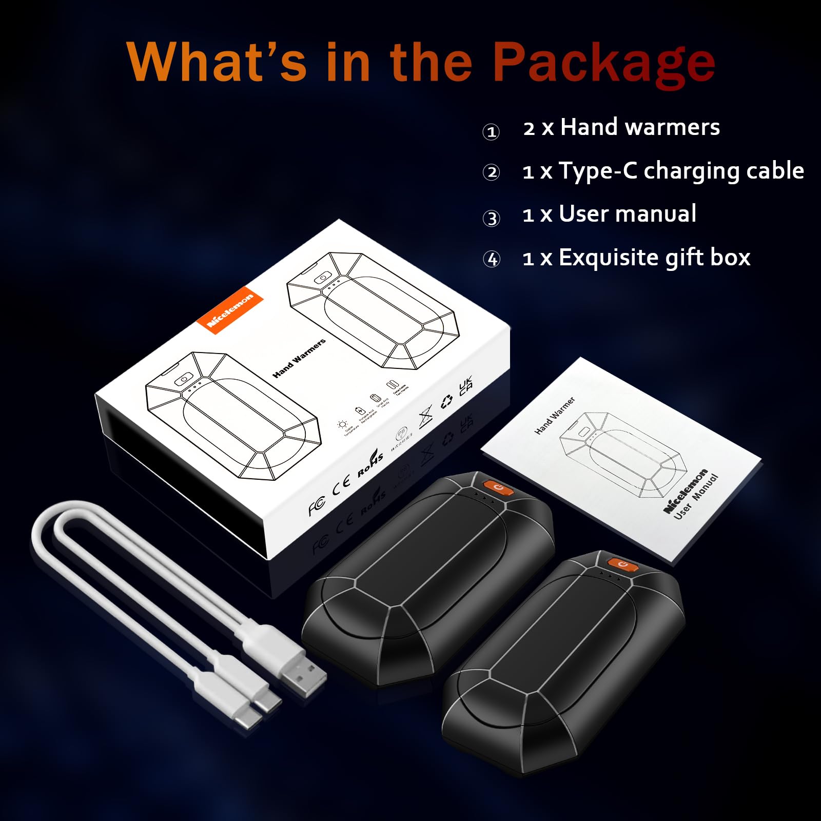 Nicelemon Electric Hand Warmers Rechargeable 2 Pack, Reusable Handwarmers, Portable Pocket Heater for Camping, Hunting, Golf, Gift for Men Women (Black)