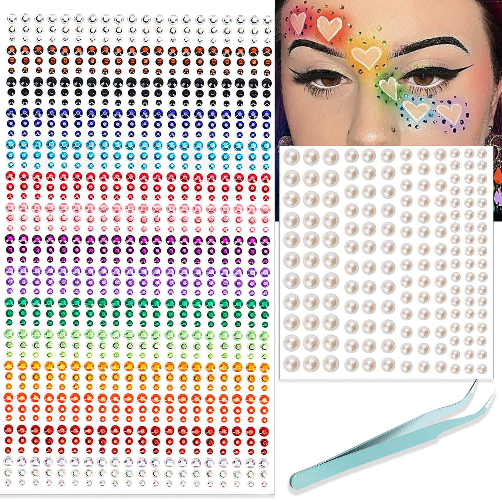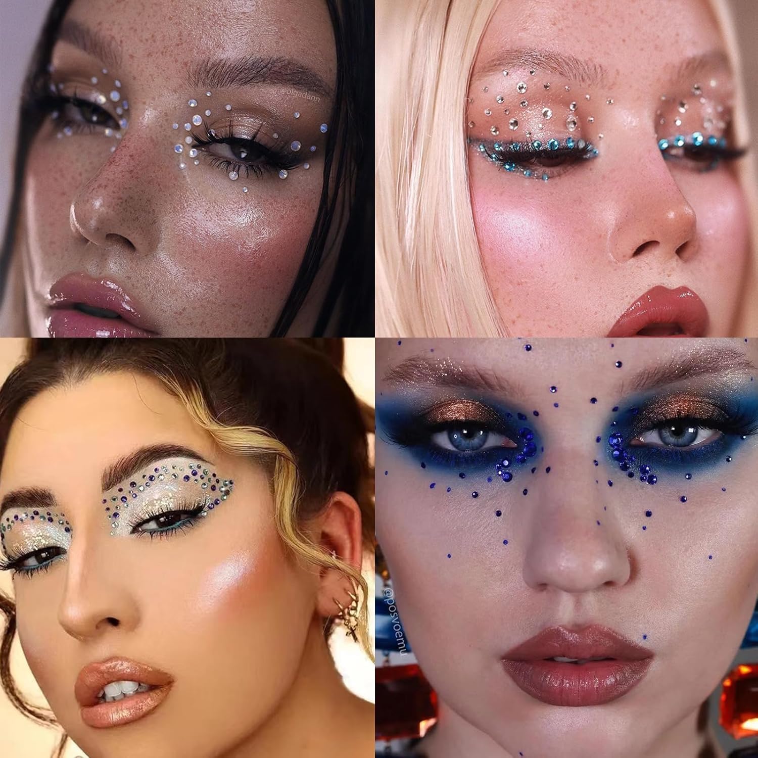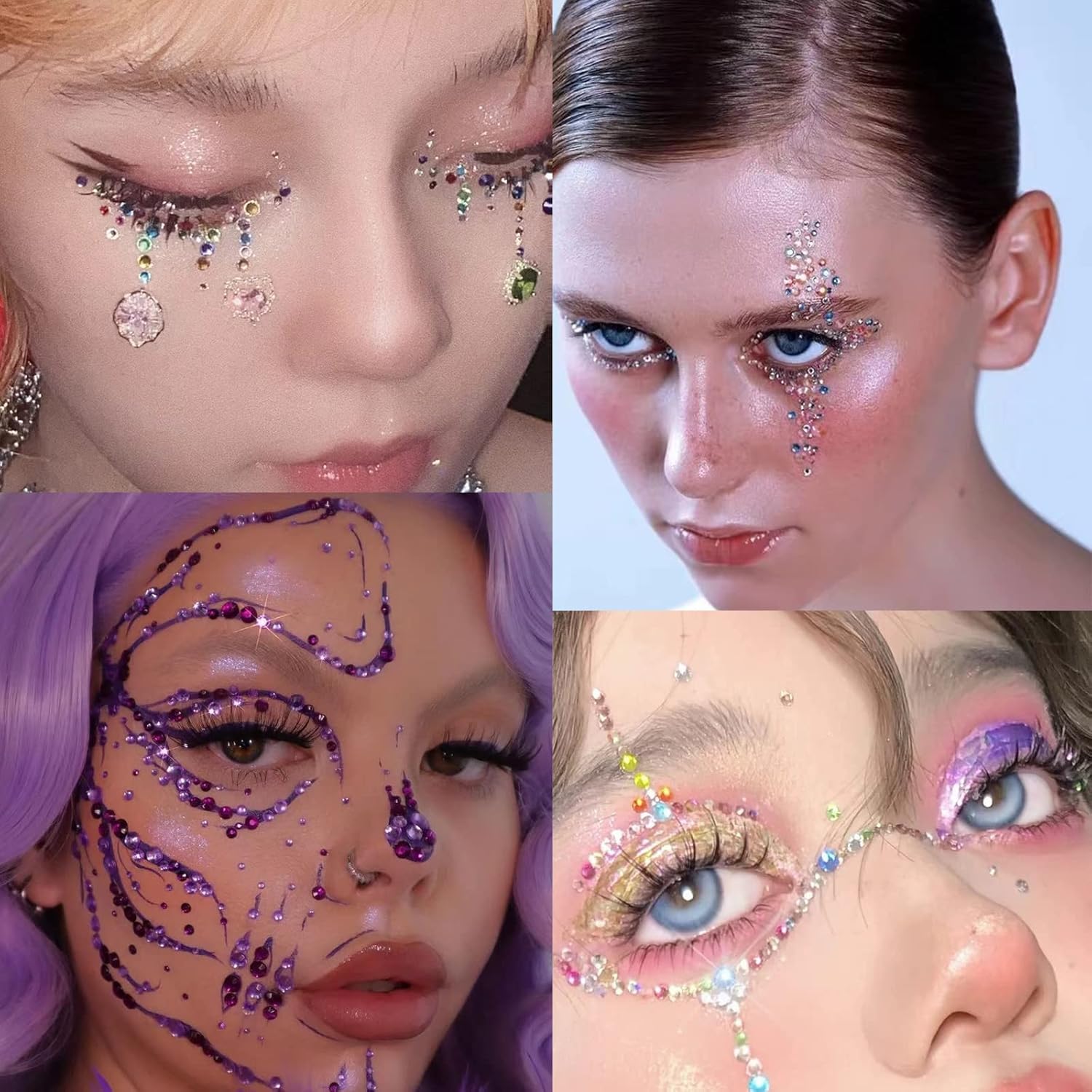 - 💎【Durable and Reusable】: Each face jewels for makeup is backed with glue. The face rhinestones for makeup can be used over and over again. When the glue dries, it can be used again with eyelash glue.