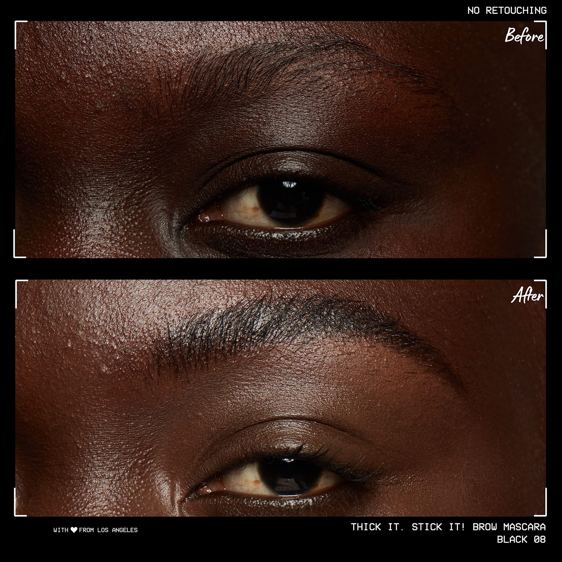 - Thickening Eyebrow Gel: Tint, tame, and thicken all types of eyebrows with a natural finish that lasts up to 16 hours with this ultra-buildable, vegan tinted brow mascara in 8 high-impact inclusive shades