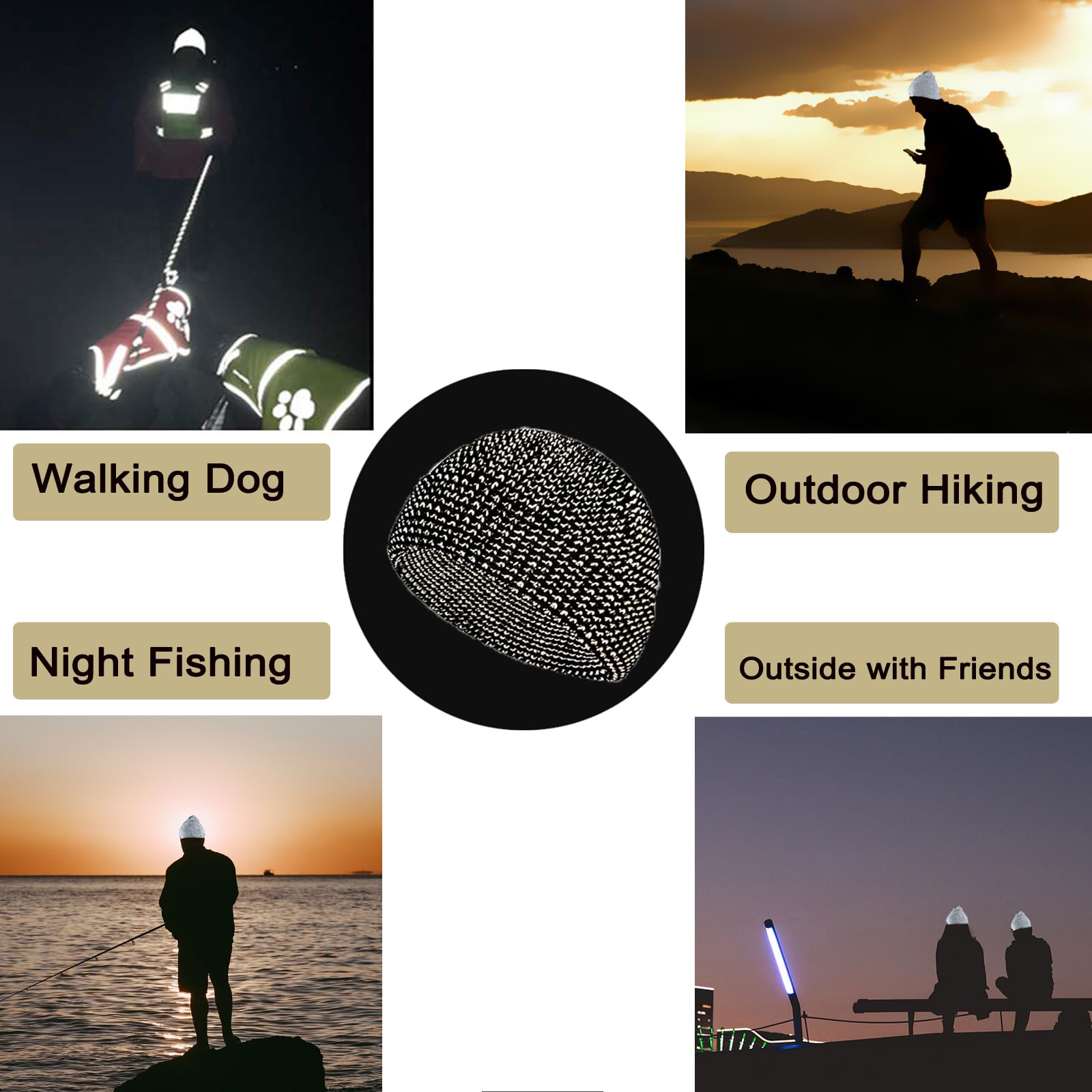 - High Visibility At Night: This reflective winter beanie night walking running reflective hat with reflective yarn accents for 360°Visibility, help you to be seen and be safe during at night, suitable for many outdoor activities (NOTE: The reflective threading will light up when lights (car headlight or street lamp) shine on it