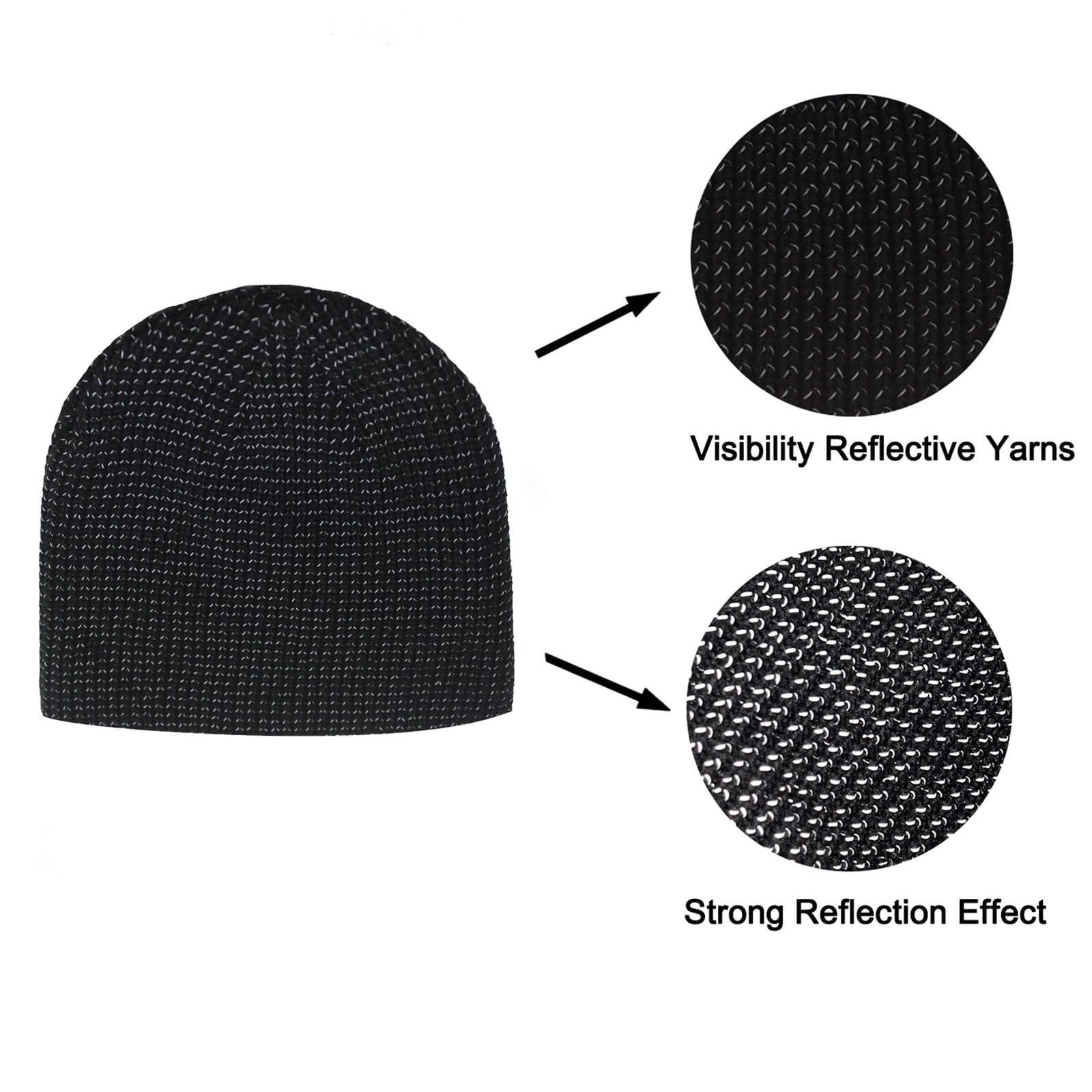 - Reflective Winter Safety Beanie Hats: This reflective beanie high visibility hat are designed with full reflective yarns throughout the beanie, highly visible winter reflective hat is for running, night walking, biking, fishing, hiking, skiing, night walking the dog and jogging, a great outdoor reflective hat beanie for men women