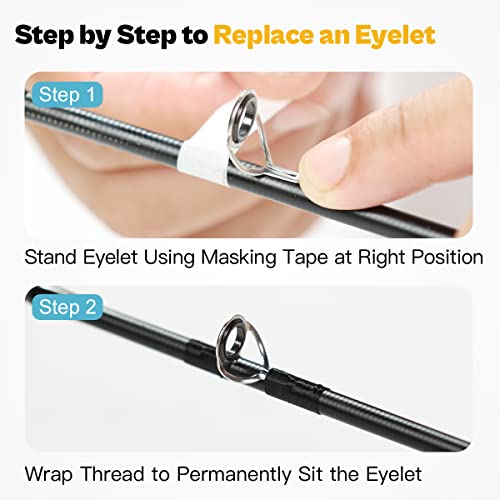 - This fishing rod repair kit can help you replace the broken eyelets easily and make the broken fishing pole work again for both freshwater or saltwater.