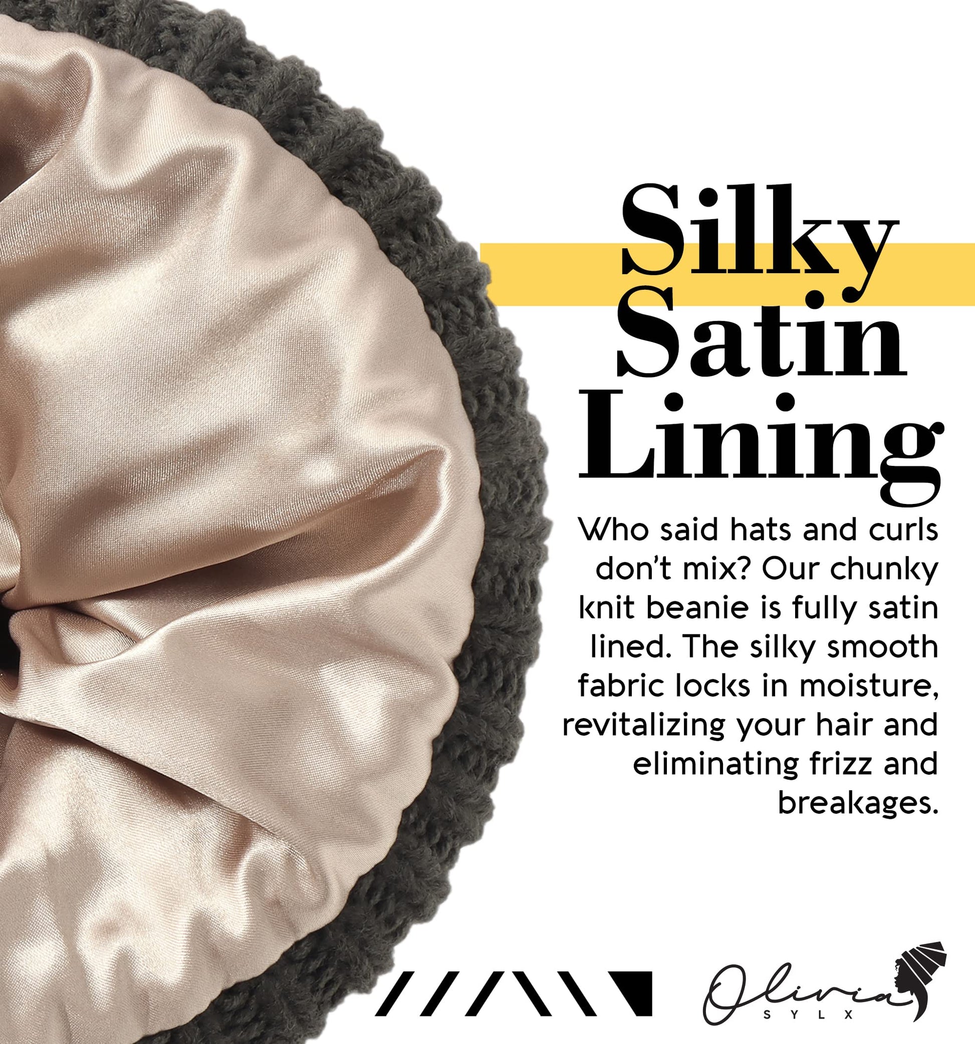 - FRIZZ-FREE HAIR, THANKS TO SILKY SMOOTH LINING: This beanie with satin lining helps you stay cozy and warm without damaging curls or hair texture. We chose silky-smooth, premium high thread count satin for our beautifully warm satin lined hats. The satin lining prevents frizz and breakages by locking in moisture to keep hair from damage caused by dryness.