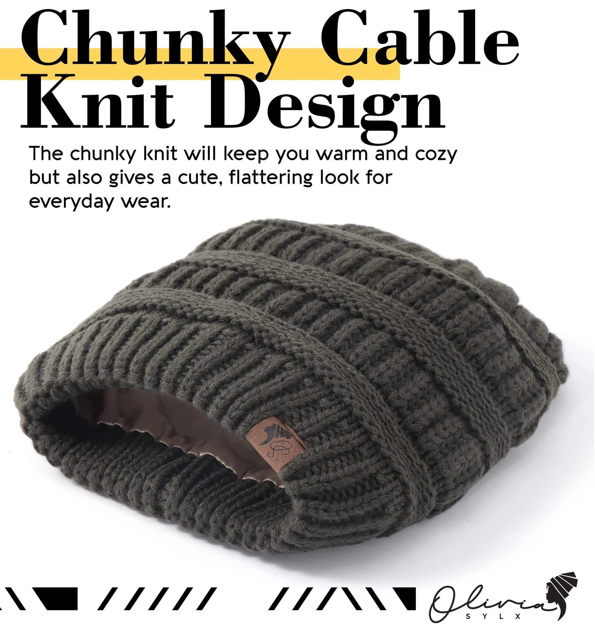 Olivia Sylx Satin Lined Beanie for Women - Satin Beanie,Silk Beanie, Satin Lined Winter Hats for Women & Slouchy Beanie Army Green