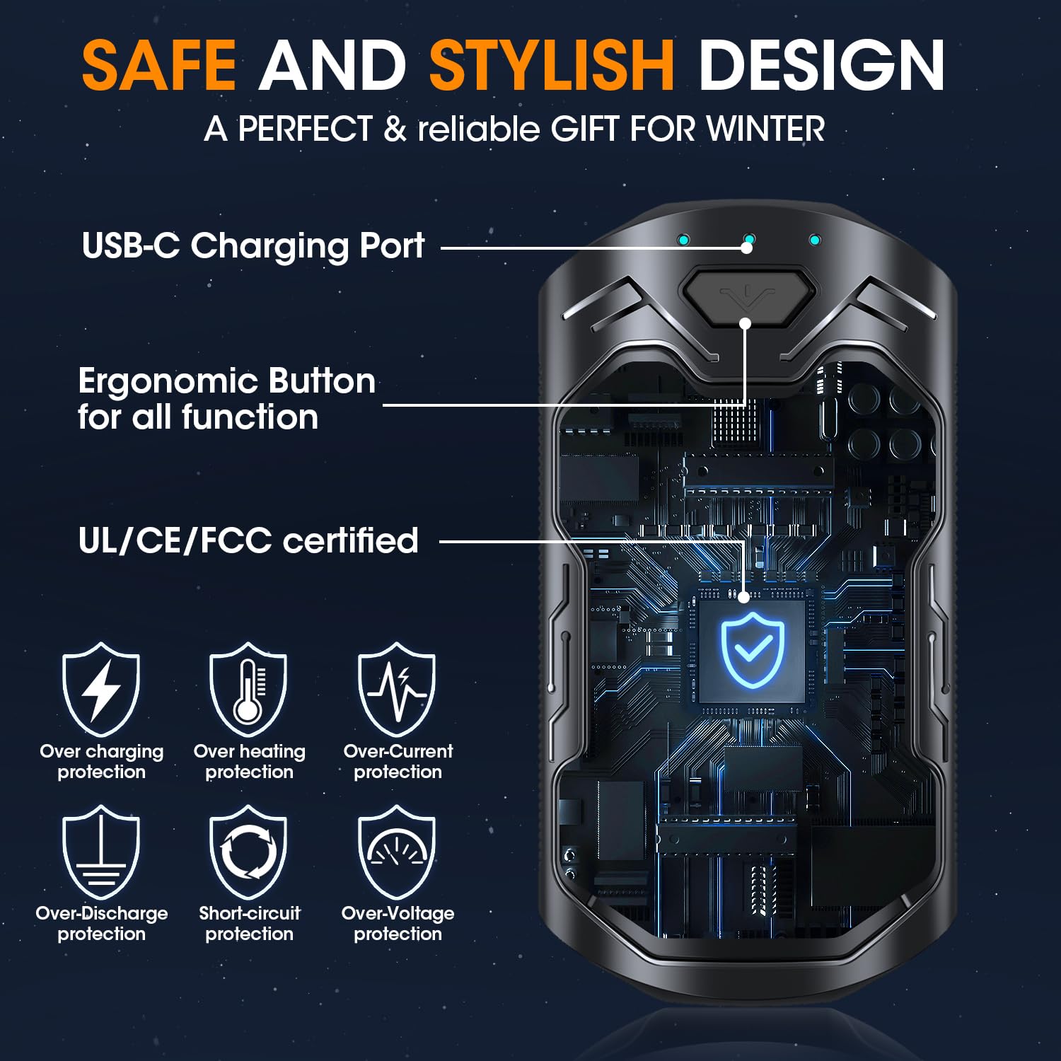 - 【Safety Certified & Premium Quality】Certificated with UL, CE, and FCC.The 2023 upgraded portable handwarmers have multiple protection technologies and built-in UL certified batteries. Hand warmers are made of high-tech aviation-grade aluminum and ABS material, thousands of polished exterior materials, easy to hold, warm and smooth, portable and compact, bringing warmth all day long.Making you and your loved ones safer and warmer.