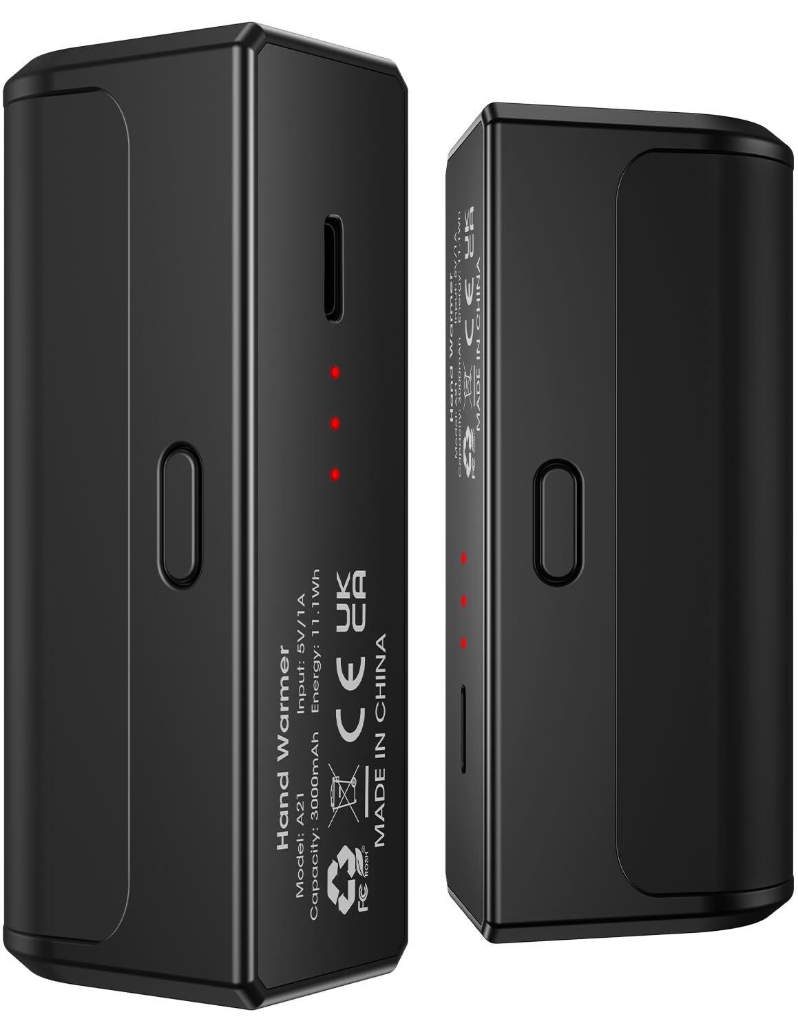 - 【18Hrs Longer Lasting Warmth】Built-in a large rechargeable 6000mAh battery capacity,which allows hand warmer create a large heat output runs duration up to 18+ hours on cozy 1-2 level setting. It meets your needs all day long effortlessly like camping,traveling,golf,fishing or indoor/outdoor activities etc. And we offer a split USB-C charging cable to saving your charging time,ensure you experience the more warming moments in winter.
