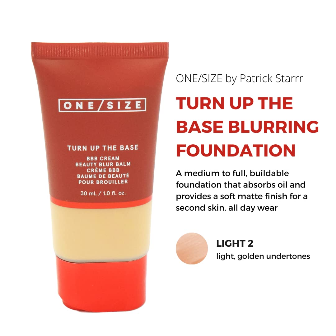 Details: One/Size Turn Up The Base BBB Cream Beauty Blur Balm - Light 2 (Light, Golden Undertones) - 1 fl oz / 30 mL. Turn up with the ultimate blur boss! This medium to full, buildable foundation absorbs oil and provides a soft matte finish for a second skin, all day wear.