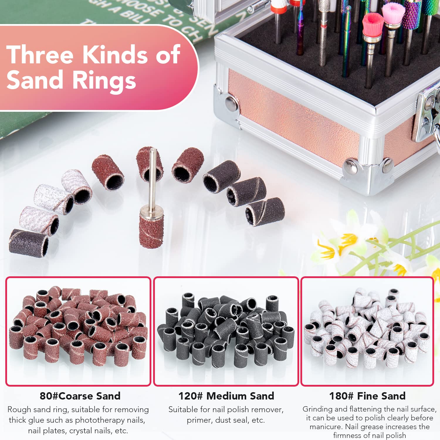 - Three-in-One Nail Sanding Bands for Nail Drill :Includes three sanding bands of different sizes and one sanding head. The larger the number on the sanding band, the finer and smoother it is; the smaller the number, the coarser and sharper it is. The sanding head is made of hard alloy, which is durable and can speed up the nail removal process. The three different sanding types can be used for different needs, such as nail removal, polishing, or thickening of nails or calluses.