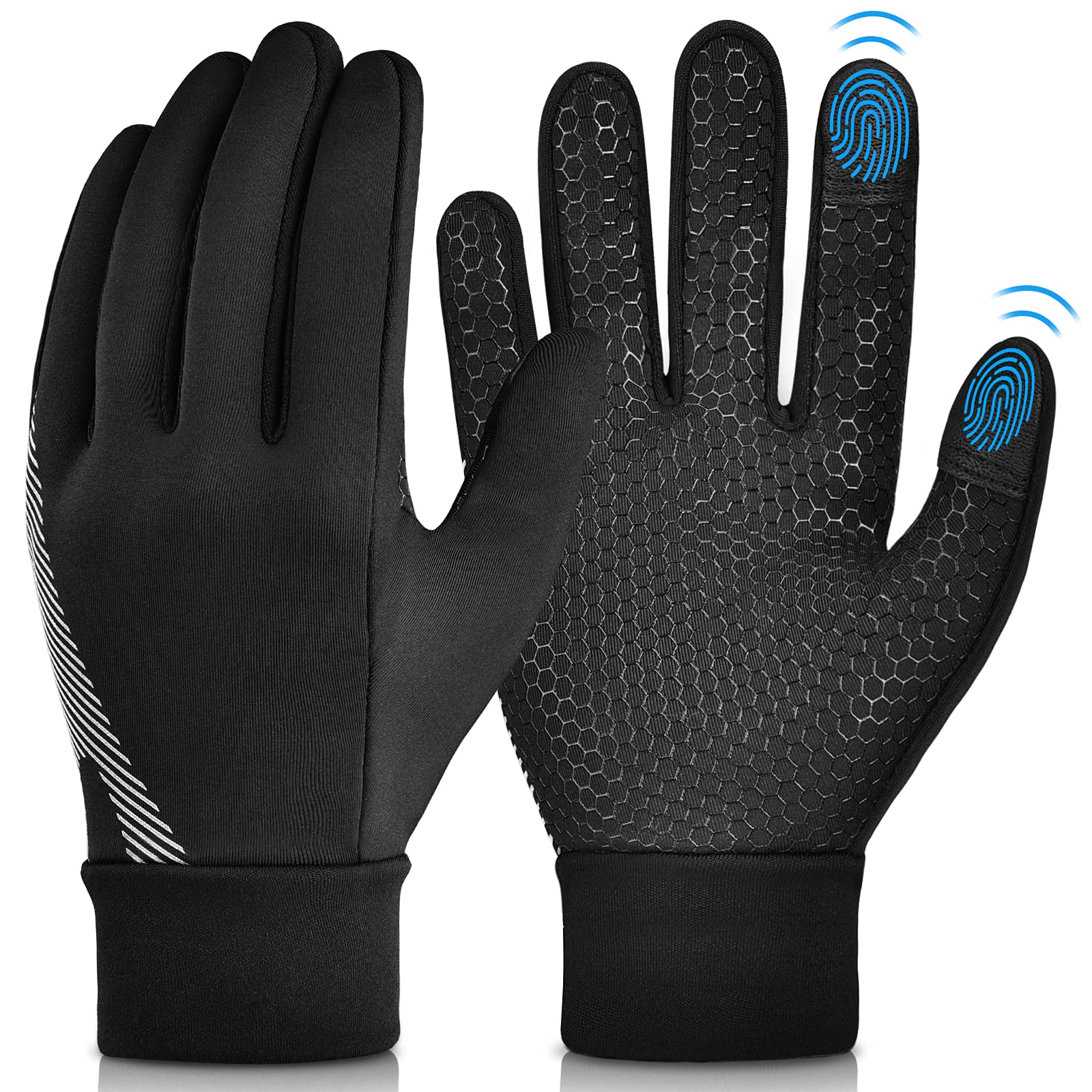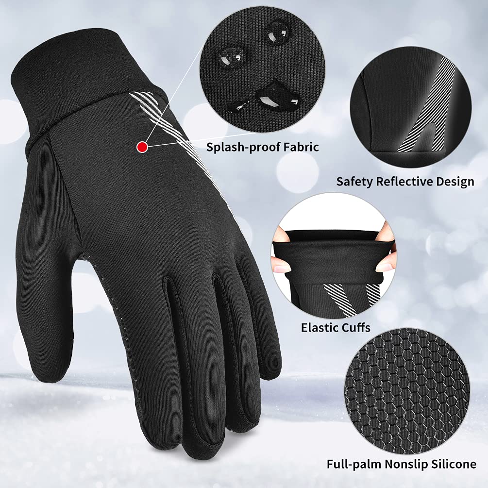 - Anti-slip palm & Reflective printing - Anti-skid silicone of warm boy girl gloves printed on the palms and finger-tips, adds the friction and helps you to grip electronic devices like phone, pad and small items firmly.Reflective strips are printed on the back of gloves for night outdoor activities. This design is simple but trendy, increase the visibility at night and reduce the possibility of injury when running,cycling, jogging,or playing at night