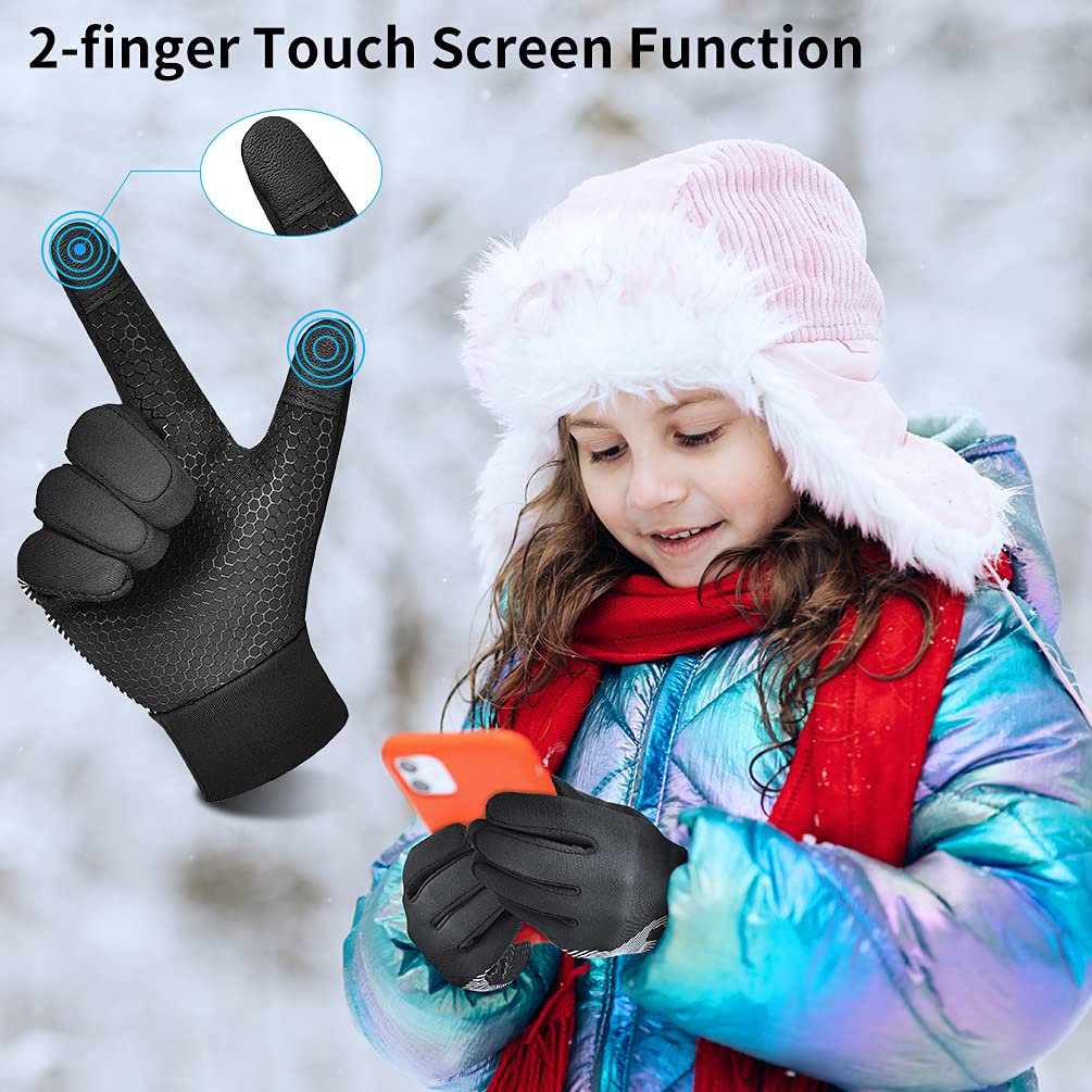 - Upgraded Touch Screen Gloves - Kids touchscreen gloves are equipped with upgraded touch screen conductive fabric on the thumb and index, the touchscreen working experience is more sensitive, more durable. Children can use the smartphones, pads and other touchscreen devices normally without taking off the gloves