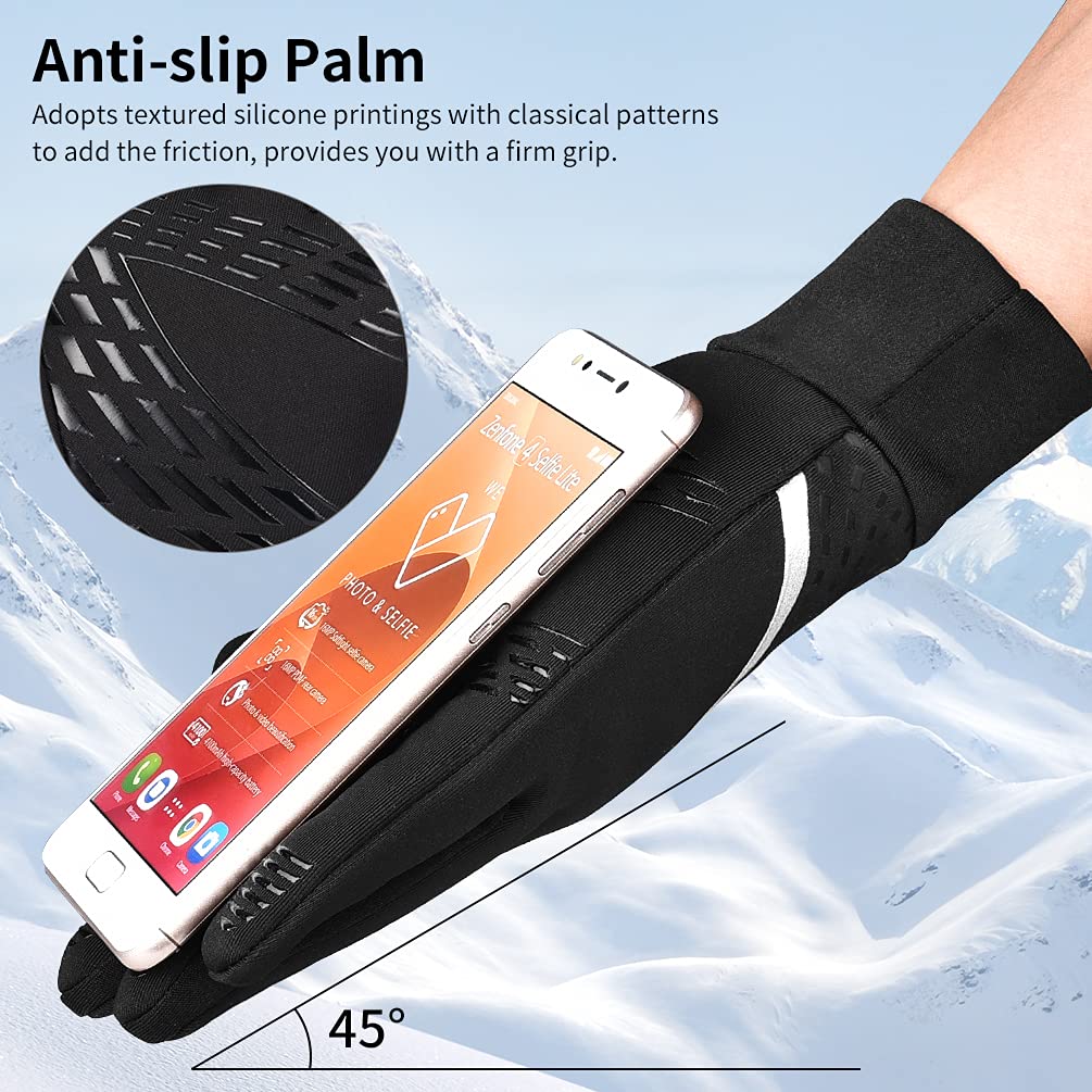 OOPOR Winter Warm Running Sports Gloves - Cold Weather Ski Outdoor Thermal Bike Black Mittens for Man Woman M