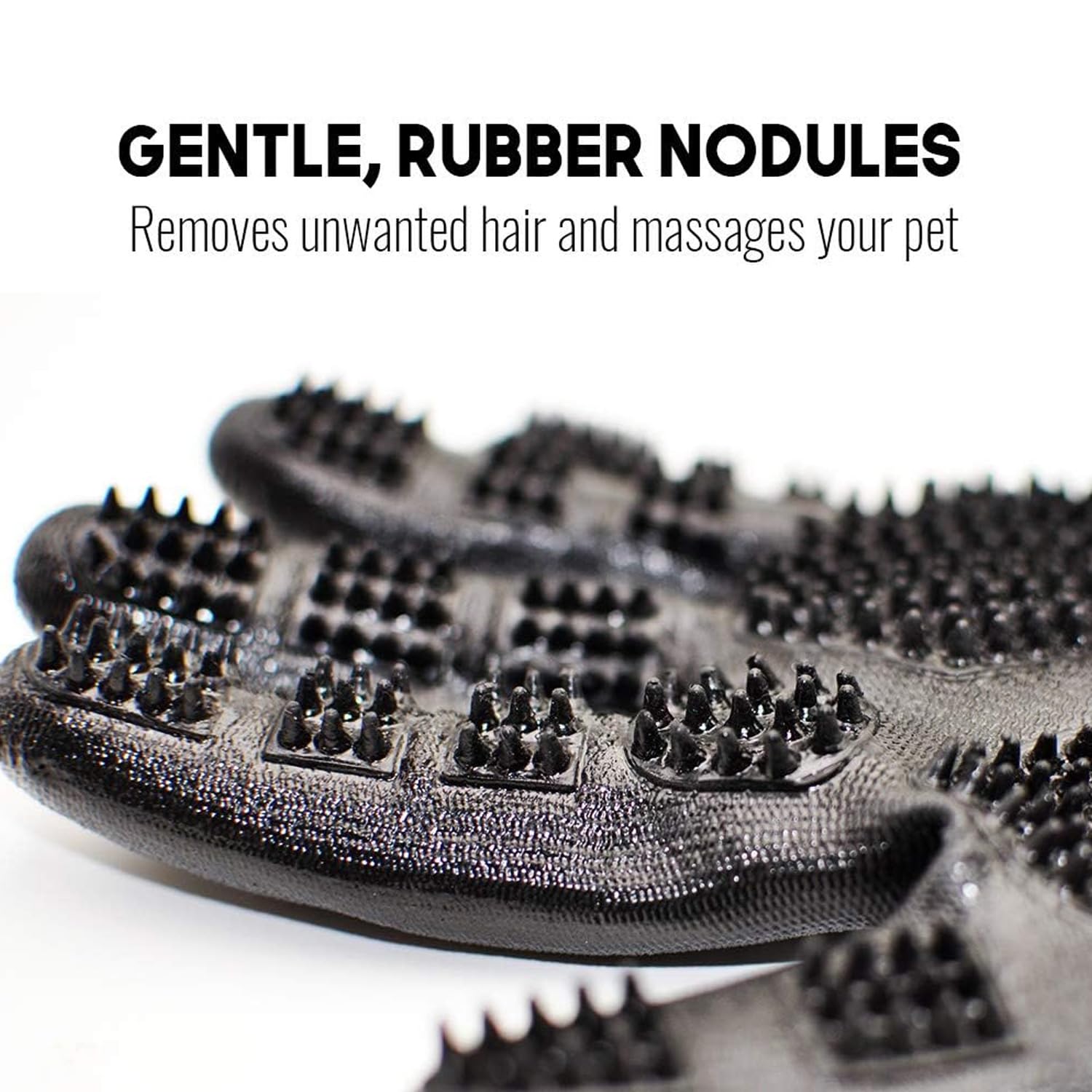 - 🧤 Control & Comfort: The five-finger design gives you full mobility while grooming your pet. It imitates the act of petting your pet and they will feel more comfortable while getting groomed. These grooming gloves are one size fits all and can be adjusted with a velcro strap. The rubber nodules are gentle on your pet’s skin, but sturdy enough to de-shed effectively.