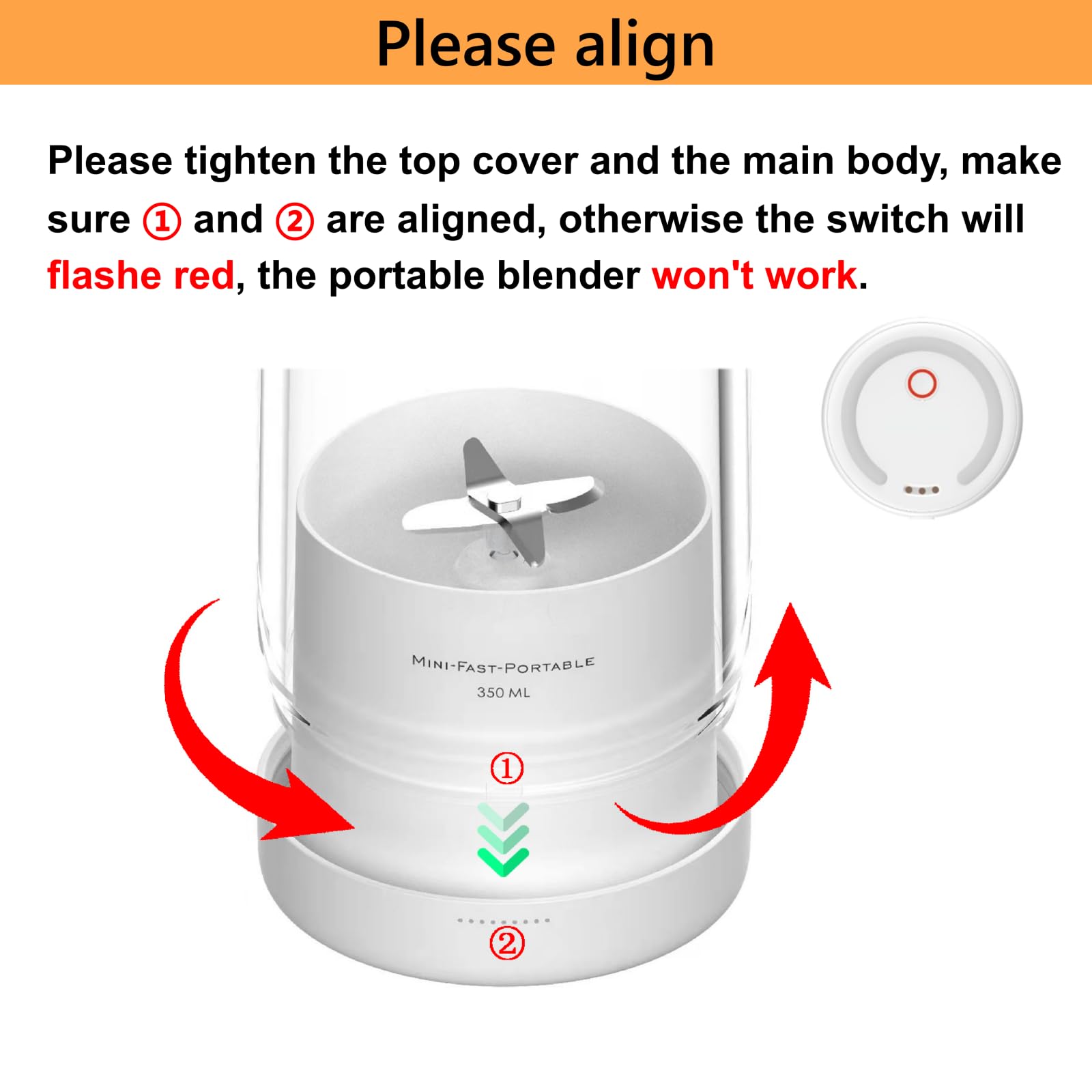 - Safety Protection Device: There is a safety protection device at the bottom of the blender. If the bottle and motor are not tightened, to avoid injury, the machine will not work, and the power button at the bottom will flash red as a reminder. Please tighten according to the instructions in the second main picture.