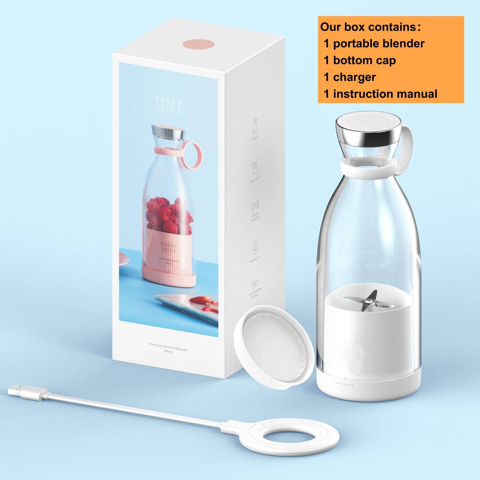OTPEIR Portable Blender for Shakes and Smoothies with 11.83 Oz Travel Cup and Lid,Durable Stainless Steel Blades for Juice Blending Performance, White