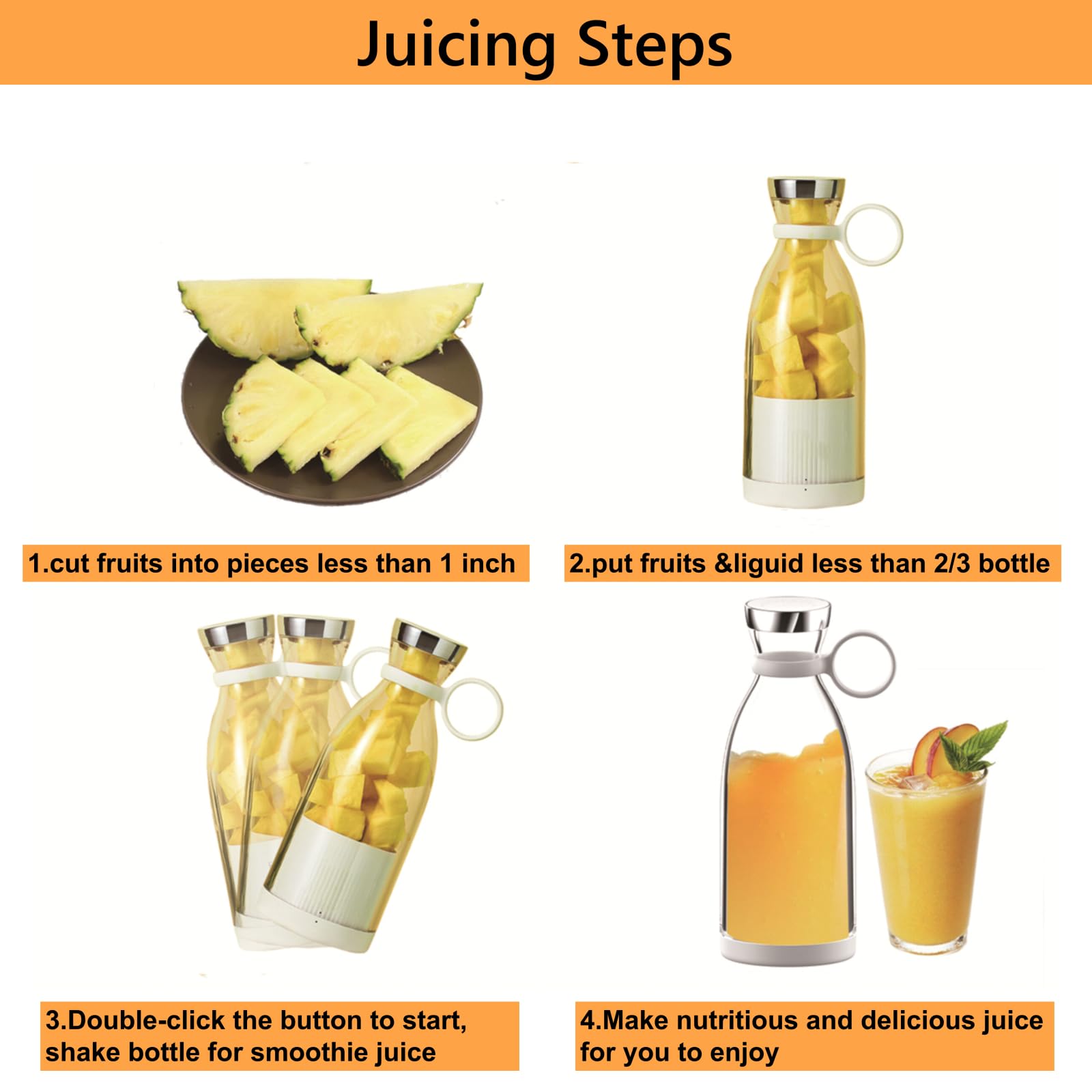 - Easy to Clean and Operation: The personal blender can be opened up and down. You can open the cap to drink and open the bottom to clean.The small blender is simple to operate, with only one button.Double click the switch to turn on the power.When working,you can shake the bottle by holding it at 45 degrees for better mixing.The single stirring time is 30 seconds.