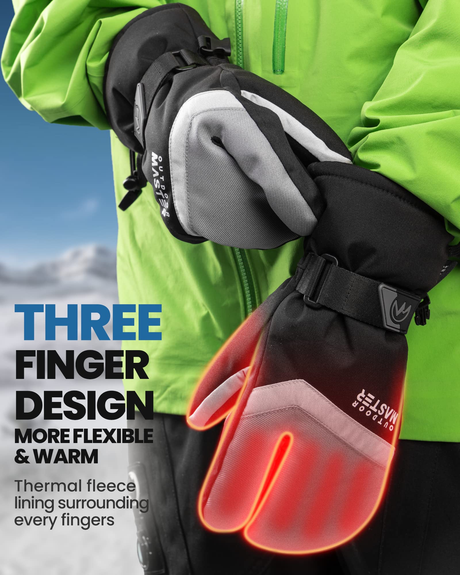 OutdoorMaster Ski Gloves for Men Women-3-Finger Snow Gloves, Full Palm Touchscreen Snowboard Glove, Adult Winter Snow Mittens for Skiing, Snowboarding and Mountaineering