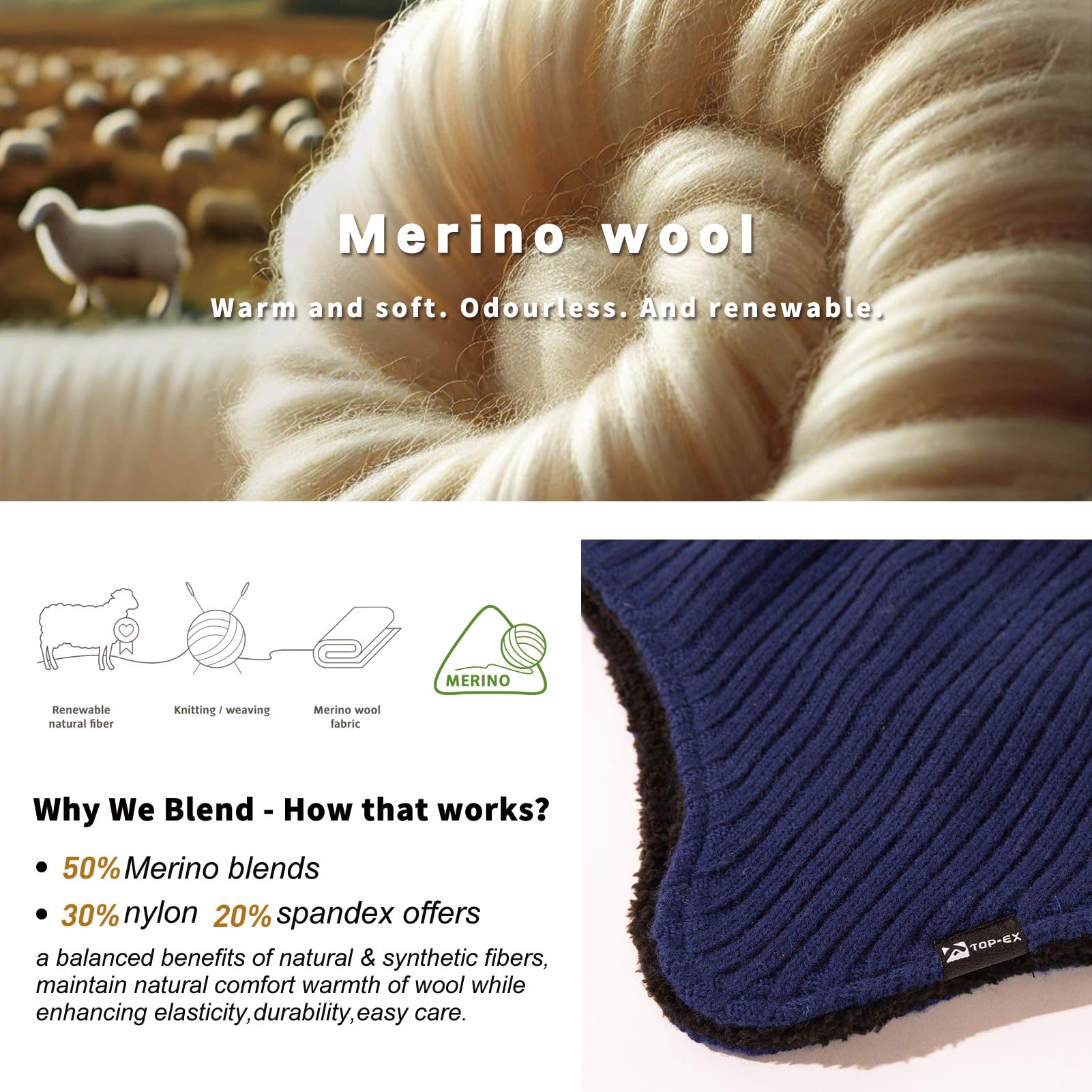 - 【50% Merino Wool Water-Resistant Fabric】:blends 30%nylon 20%spandex offers a balanced benefits of natural & synthetic fibers,maintain natural comfort warmth of wool while enhancing elasticity,durability,easy care,practical choice for fall winter activities: running,hiking,fishing,trekking,boating,hunting,camping in cold. Protection from sudden drizzle rain outdoors. However please note that while it can withstand light rain, but not intended for heavy downpours or prolonged exposure to moisture.
