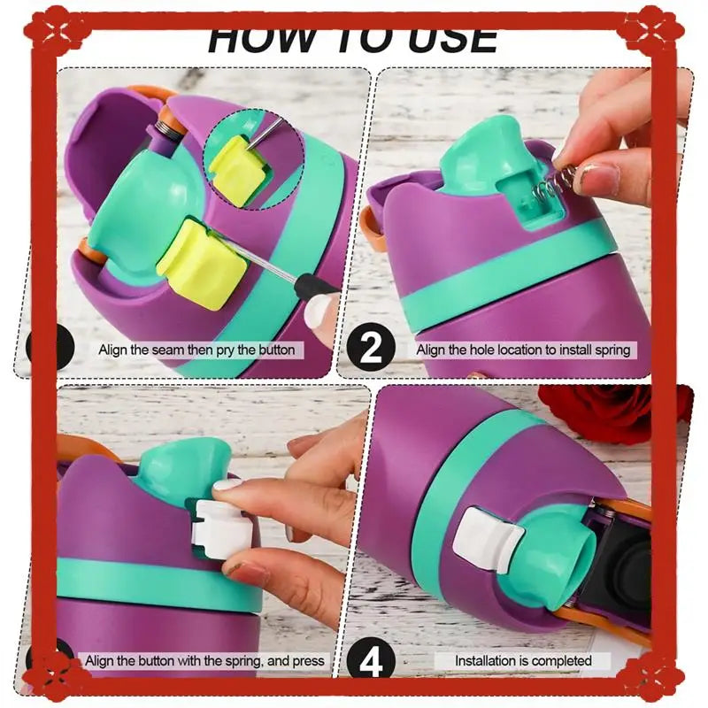 Introducing the Owala Freesip Button Replacements Water Bottle. Perfect for those on-the-go, the Freesip button allows for easy drinking without unscrewing the lid. No leaks and no spills. Stay hydrated with ease.